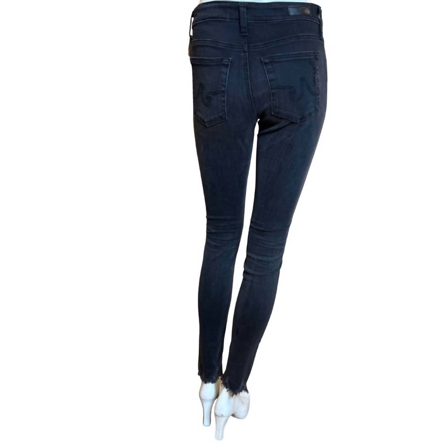A skinny jean that is both flatering and comfortable. We love this style because it works great with boots, or without! Discover the AG Jeans Women's Slim Raw Cuff Rips Hem Jean, an ideal choice for evening events with a vintage appeal. These slim-fit jeans feature a solid black denim fabric with skinny legs and a mid-rise waist for a flattering silhouette. Crafted for comfort and style, they include convenient pockets and a zip closure for ease of wear. Care for them easily with machine washing and laying flat to dry to maintain their classic look.