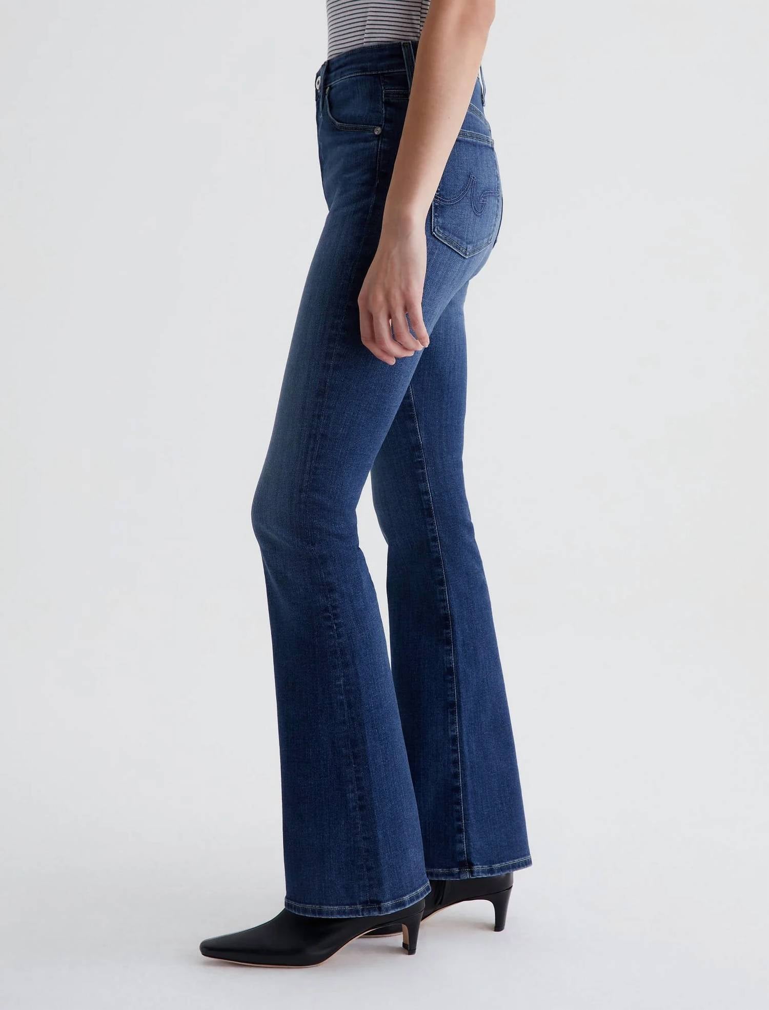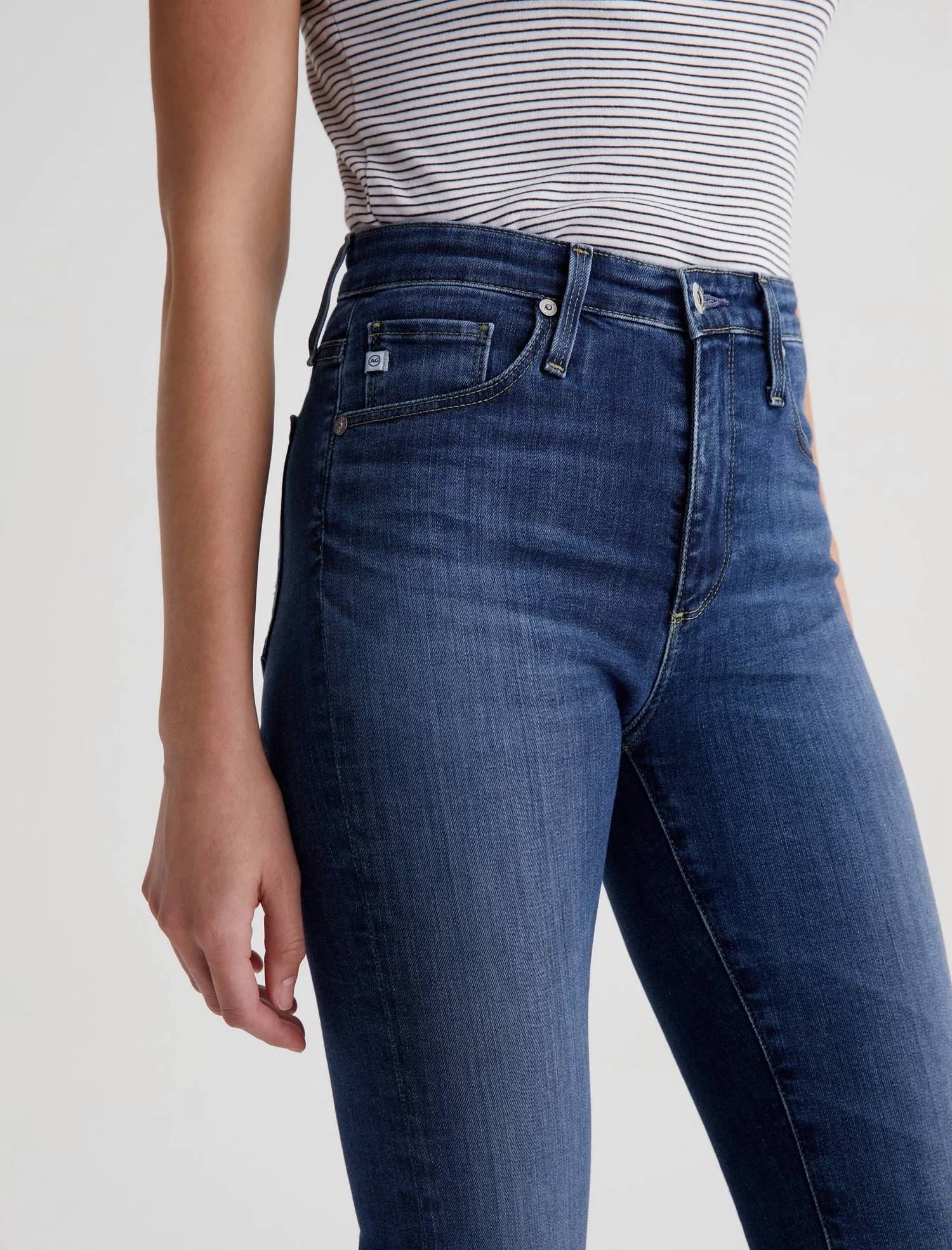 If you're looking for boot-cut, this is the jean for you. Introducing the Farrah Boot High Rise Jeans by AG Jeans, designed to give your wardrobe a stylish edge in Aura dark wash. These bootcut jeans feature a high-rise and slim fit, opening into subtly flared hems for classic streetwear appeal. They are crafted from 9.5 oz. Premiere Stretch Indigo Denim with a solid pattern and authentic fading and whiskering for a broken-in look. With a button closure and five-pocket design, these jeans are as functional as they are fashionable. Care is made easy with machine wash and tumble dry instructions.
