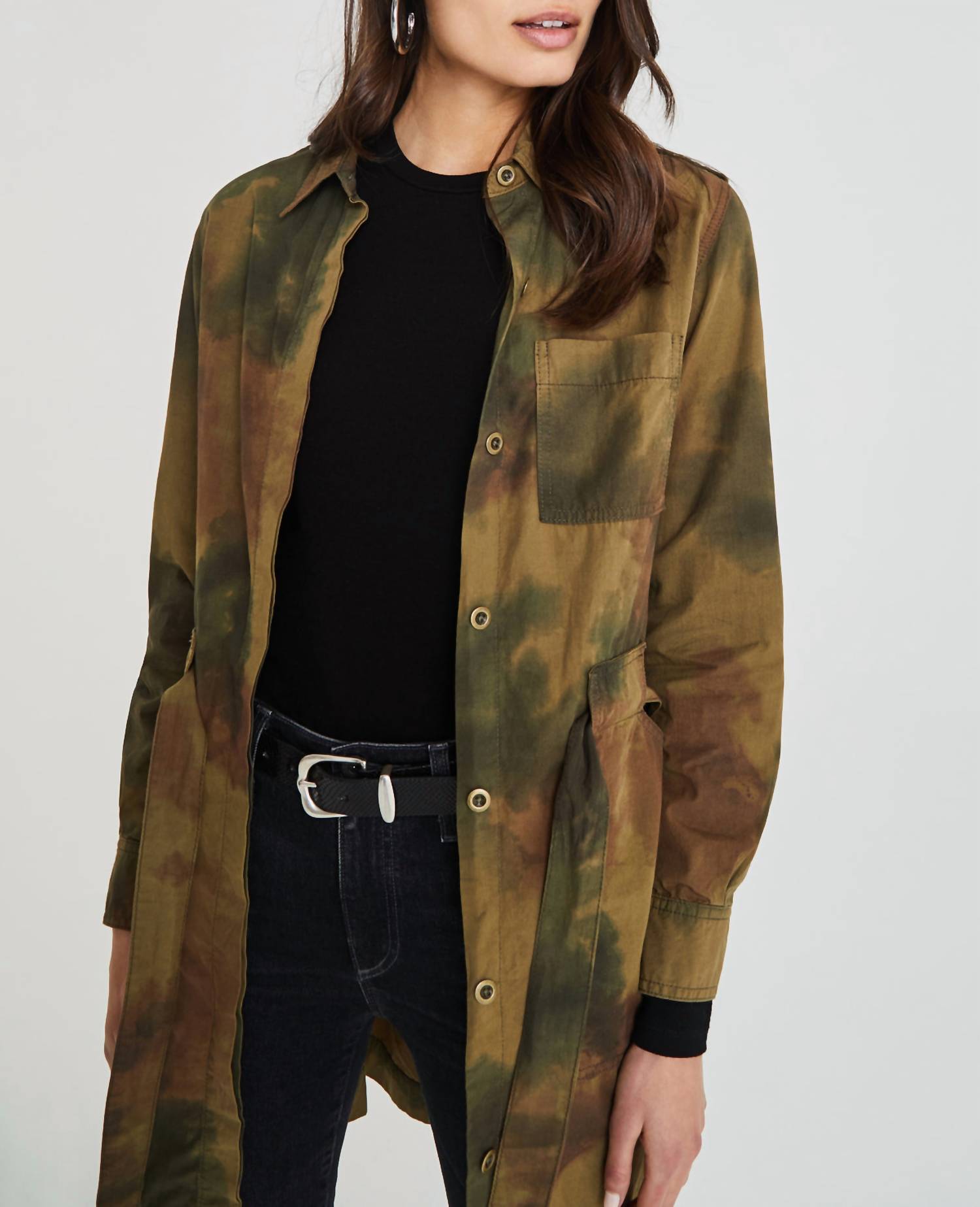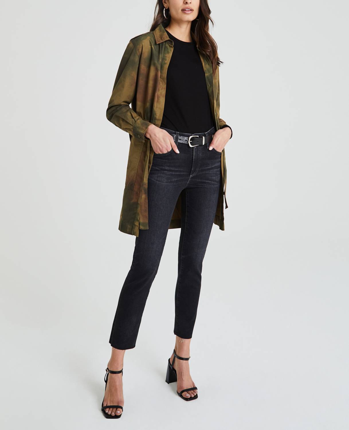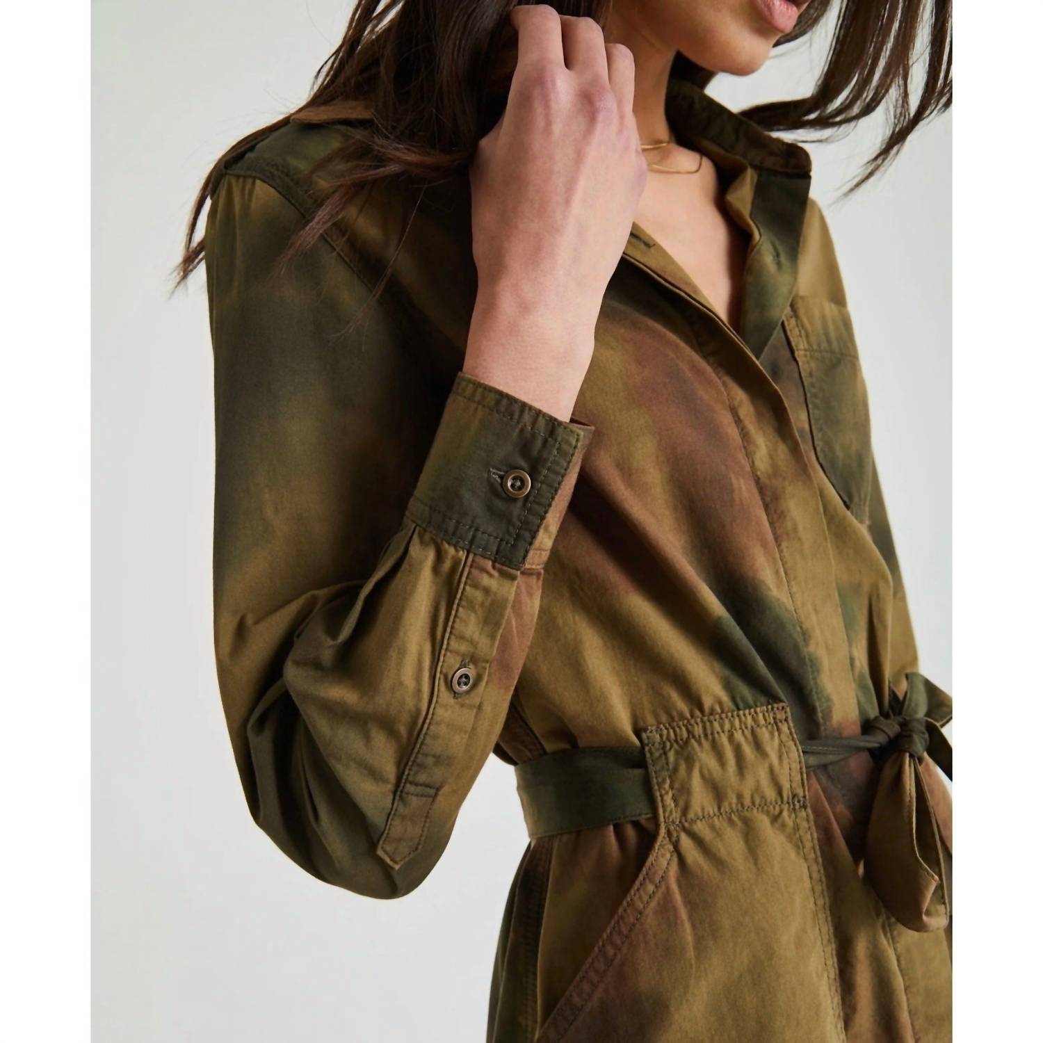 The kind of easy and flattering dress you'll be reaching for all season long. Introducing the Justine Dress by AG Jeans in Watercolor Camo Dried Grass, a uniquely artistic piece perfect for modern wardrobes. This long sleeve mini dress features an A-line silhouette and a collar neckline, offering a flattering appearance for any occasion. Crafted with attention to detail, it includes a button closure for ease of wear and handy pockets for practicality. Care instructions recommend a machine wash and tumble dry, ensuring convenience in maintenance.