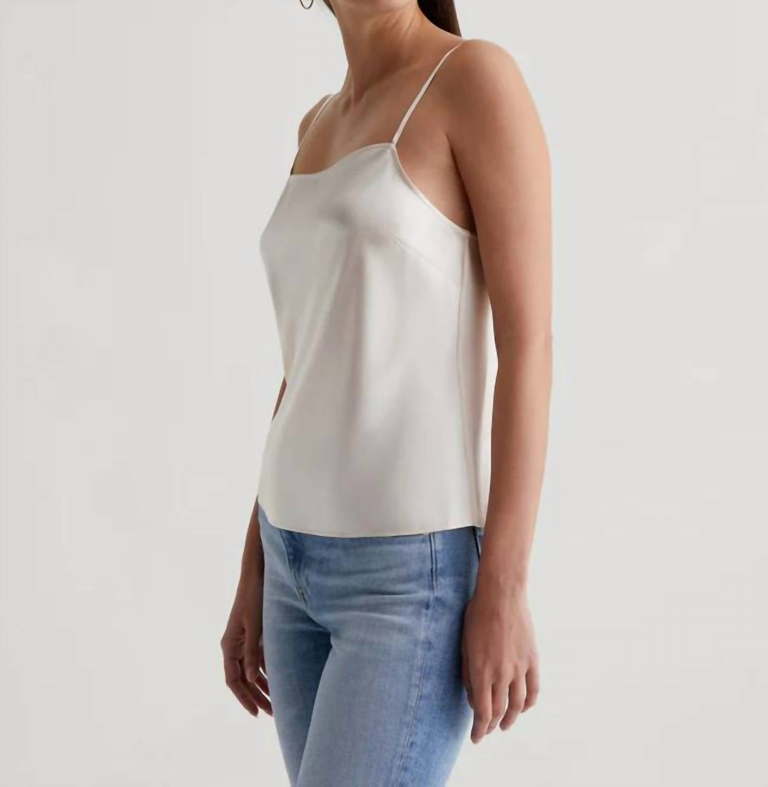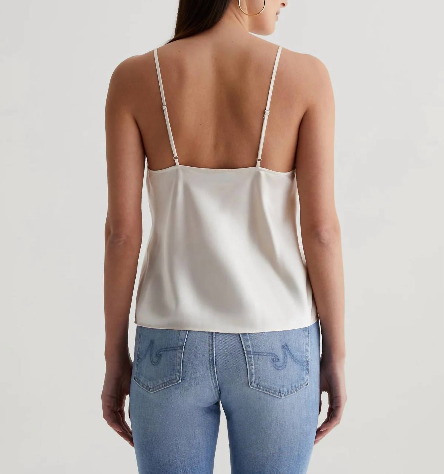 Throw this on with your favorite blazer for a more polished look. Introducing the Yenna Classic Cami Top by AG Jeans, a chic and elegant camisole perfect for any cocktail party. This sleeveless top features spaghetti straps and a scoop neckline, crafted from a luxurious blend of 92% Silk and 8% Elastane. Designed with a 16" body length and 37" chest width, this piece offers a pull-on closure for effortless wear. Care for your cami with a hand wash and lay it flat to dry, embodying the quiet luxury trend ideal for New Year's Eve festivities.