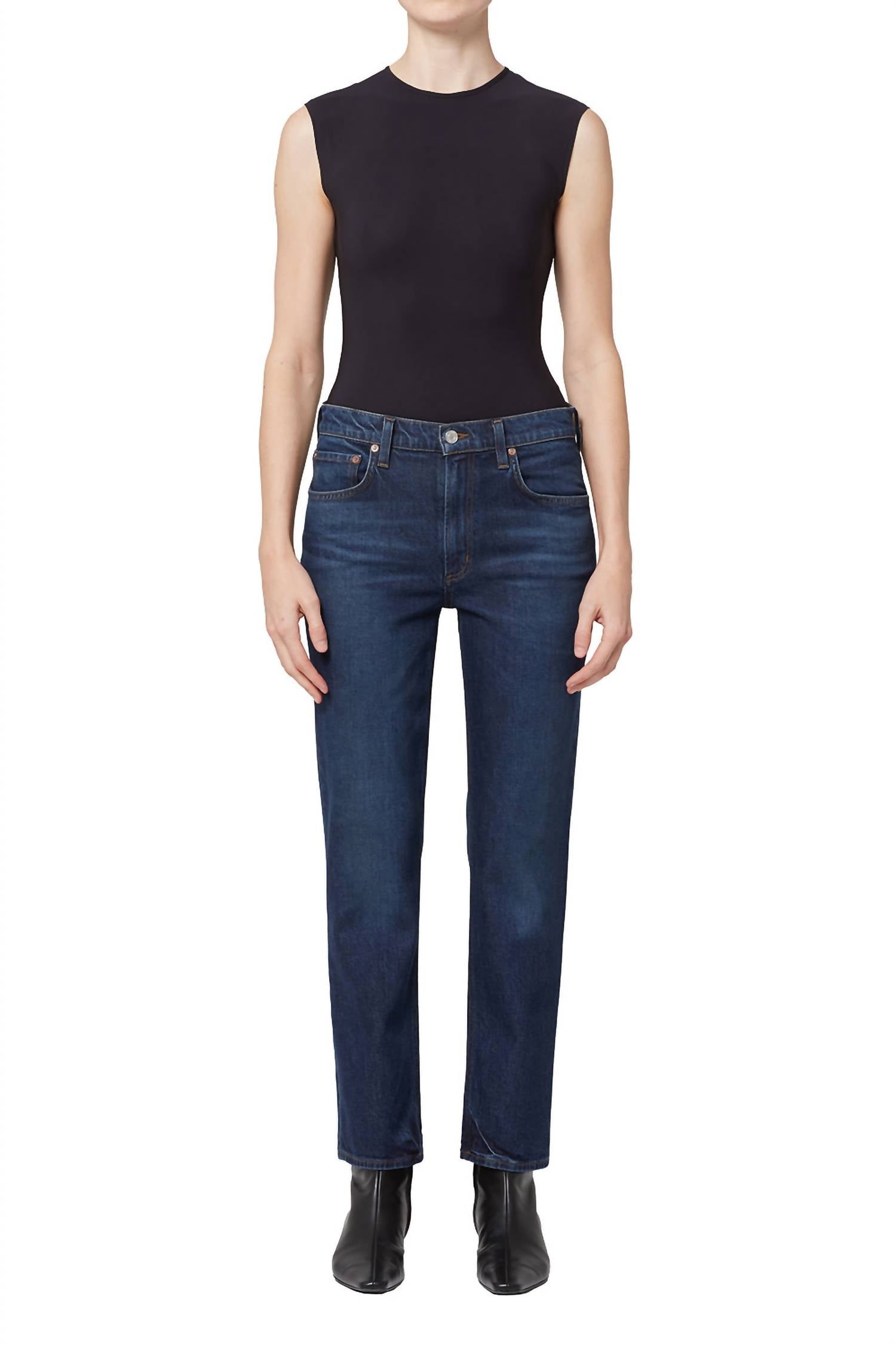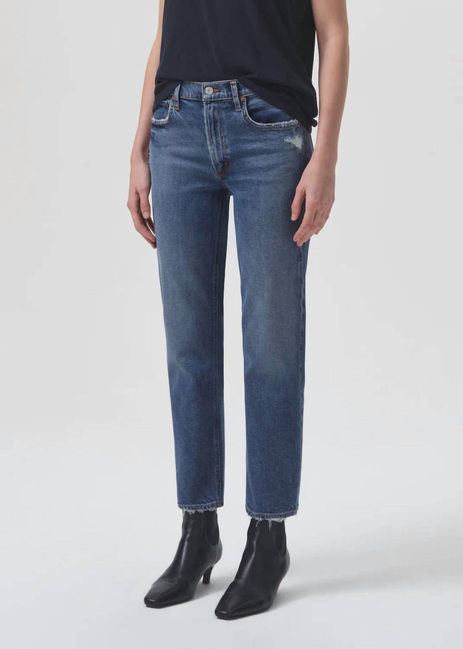 Mid-rise waist, a slim fit through the hips and a straight leg that ends slightly above the ankle. Weightless stretch denim. 66% Lyocell / 32% Organic Cotton / 2% Recycled Elastane. Machine Wash Cold Inside Out With Like Colors.