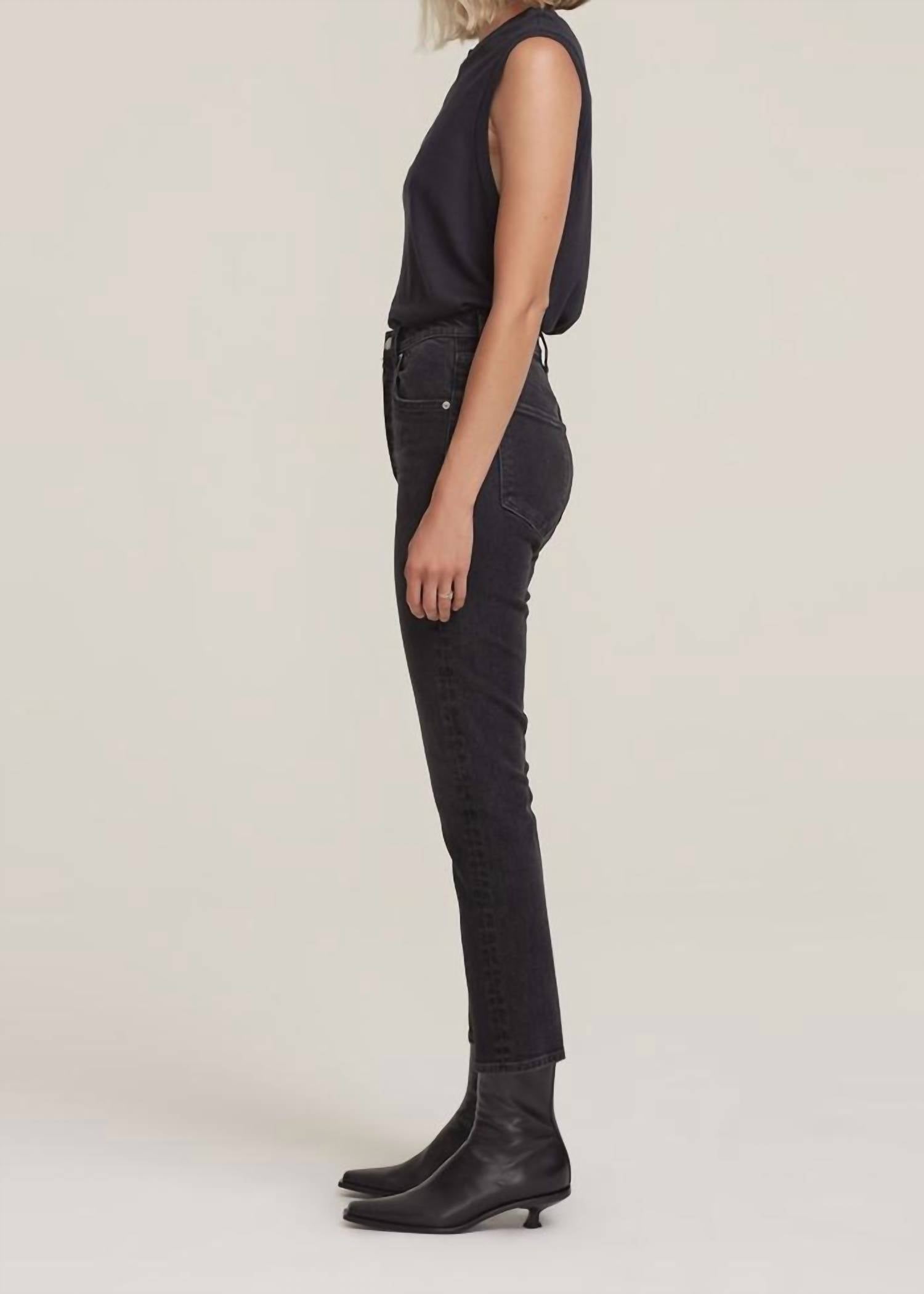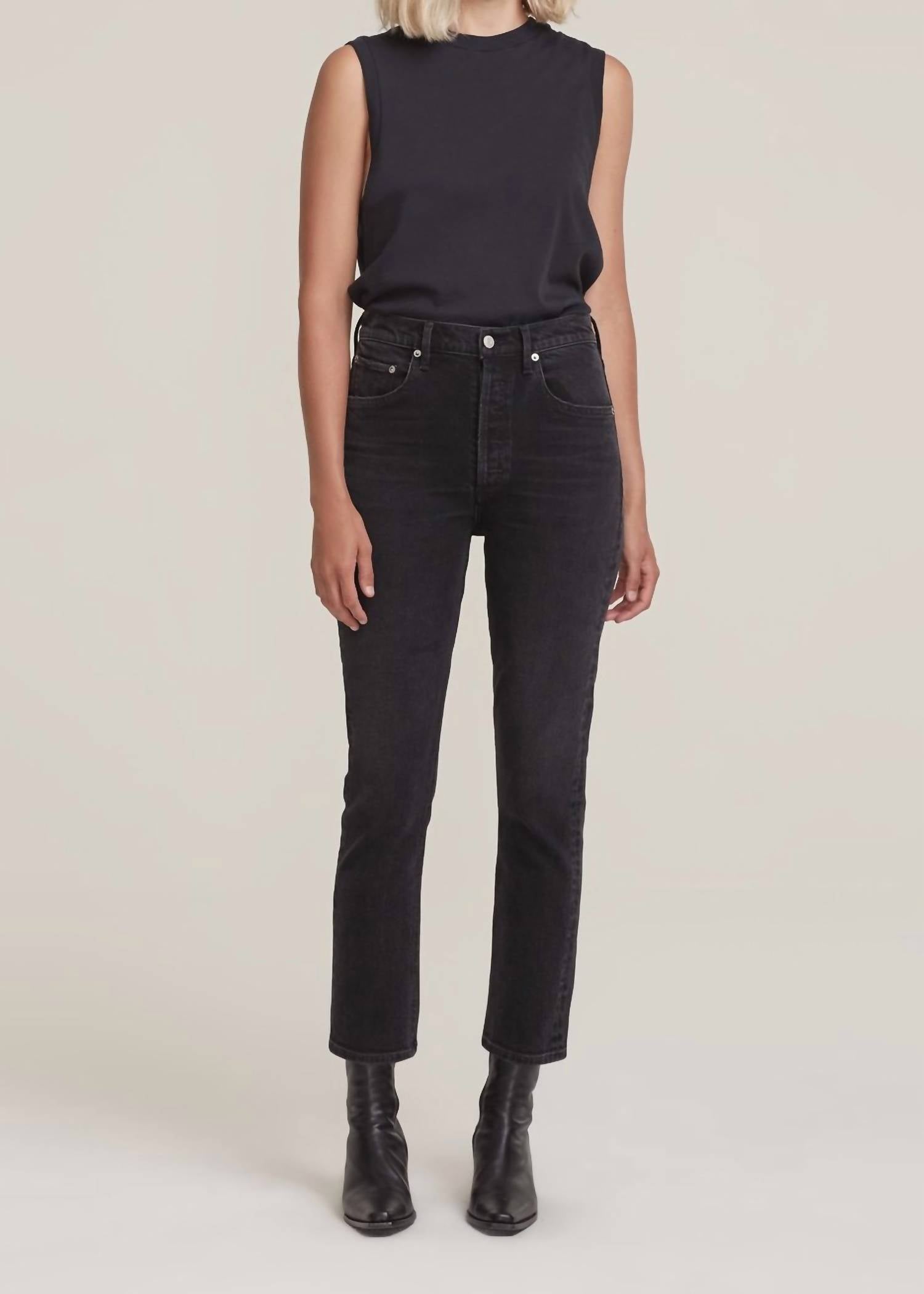 AGOLDE'S SIGNATURE STRAIGHT LEG. WITH A BETTER-THAN-VINTAGE AESTHETIC, THE RILEY IS AN ICONIC BRAND FAVORITE. THE FLATTERING HIGH-RISE AND STRAIGHT LEG HOLD CLOSE TO THE BODY FOR A UNIVERSALLY LOVED LOOK. A CROPPED INSEAM MAKES THESE EASY TO STYLE WITH ANYTHING FROM SANDALS TO A HEELED BOOT.