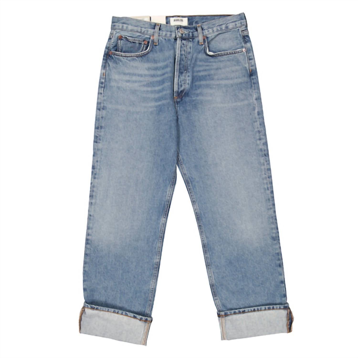These must-have jeans are fit to perfection. The AGOLDE Women's Fran Jean, shown here in the unique Invention shade, embodies effortless streetwear style. These straight-leg jeans are crafted from 100% regenerative cotton, providing both sustainability and comfort. Featuring a low-rise fit, these jeans include a convenient button and zip closure with a relaxed, tapered leg that ends in an untacked folded cuff. Proudly made in Turkey, these jeans are perfect for a spring vacation wardrobe.