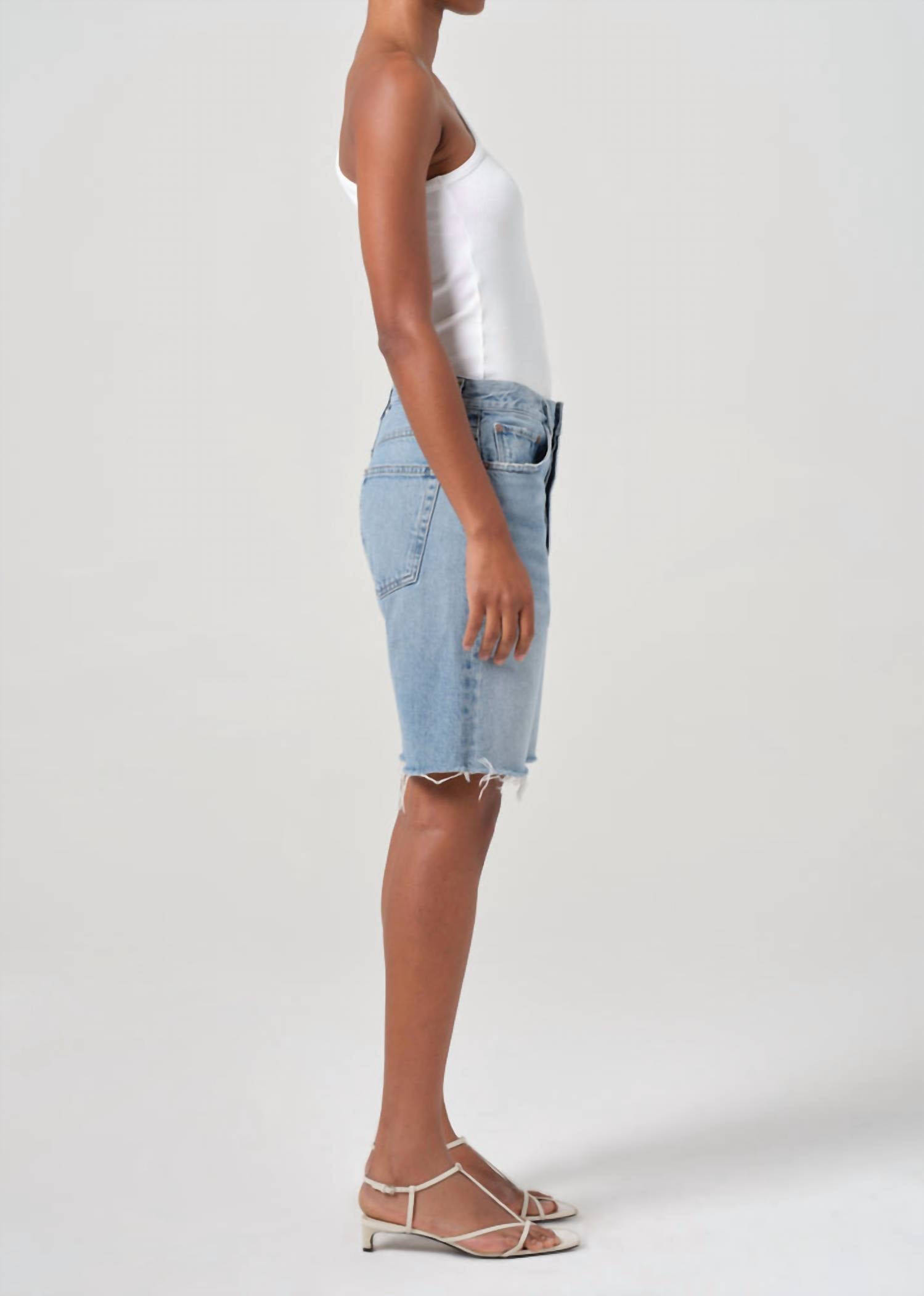 Not only cute but extremely comfortable. The jean shorts you will be reaching for all season long. Step into summer style with the AGOLDE 90's Jean Short in 'Force', a nod to the iconic 90's relaxed fit. Crafted from 100% regenerative cotton, these shorts feature a comfortable 12 1/4" rise and a roomy 9" inseam, all completed with a raw hem for a vintage appeal. Made in a vintage marbled light indigo, they offer a classic button closure and practical pockets. For easy maintenance, machine wash and tumble dry.