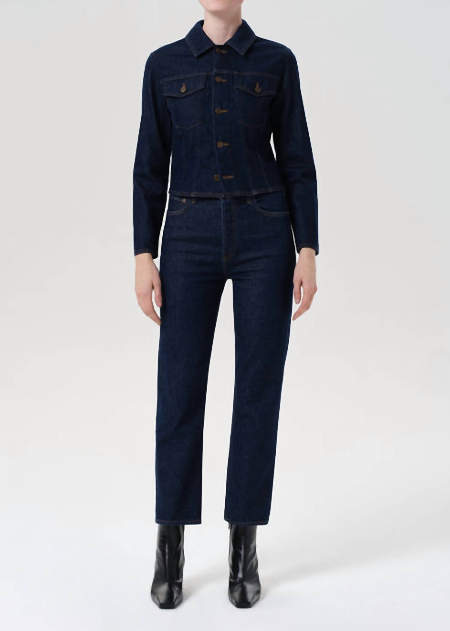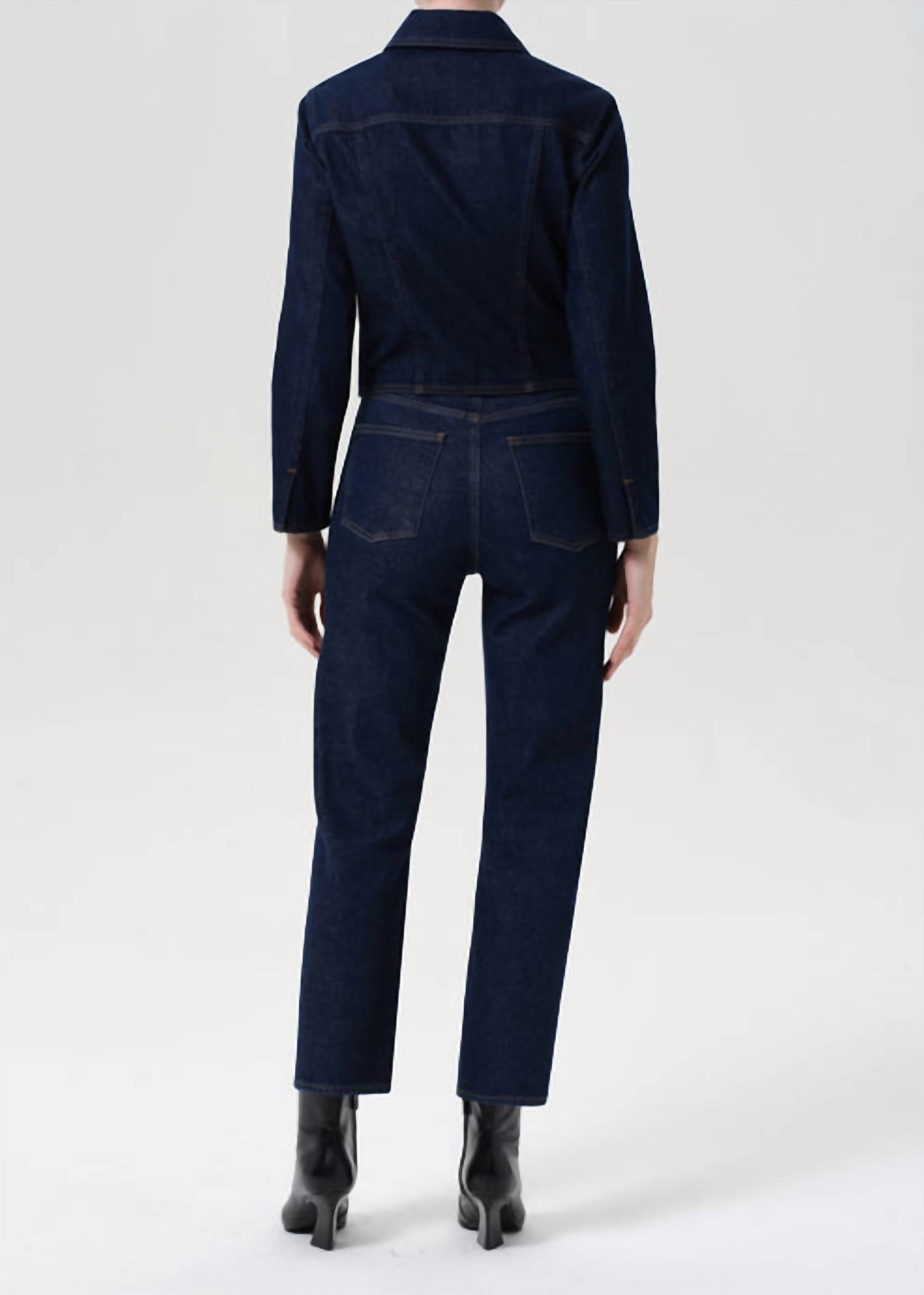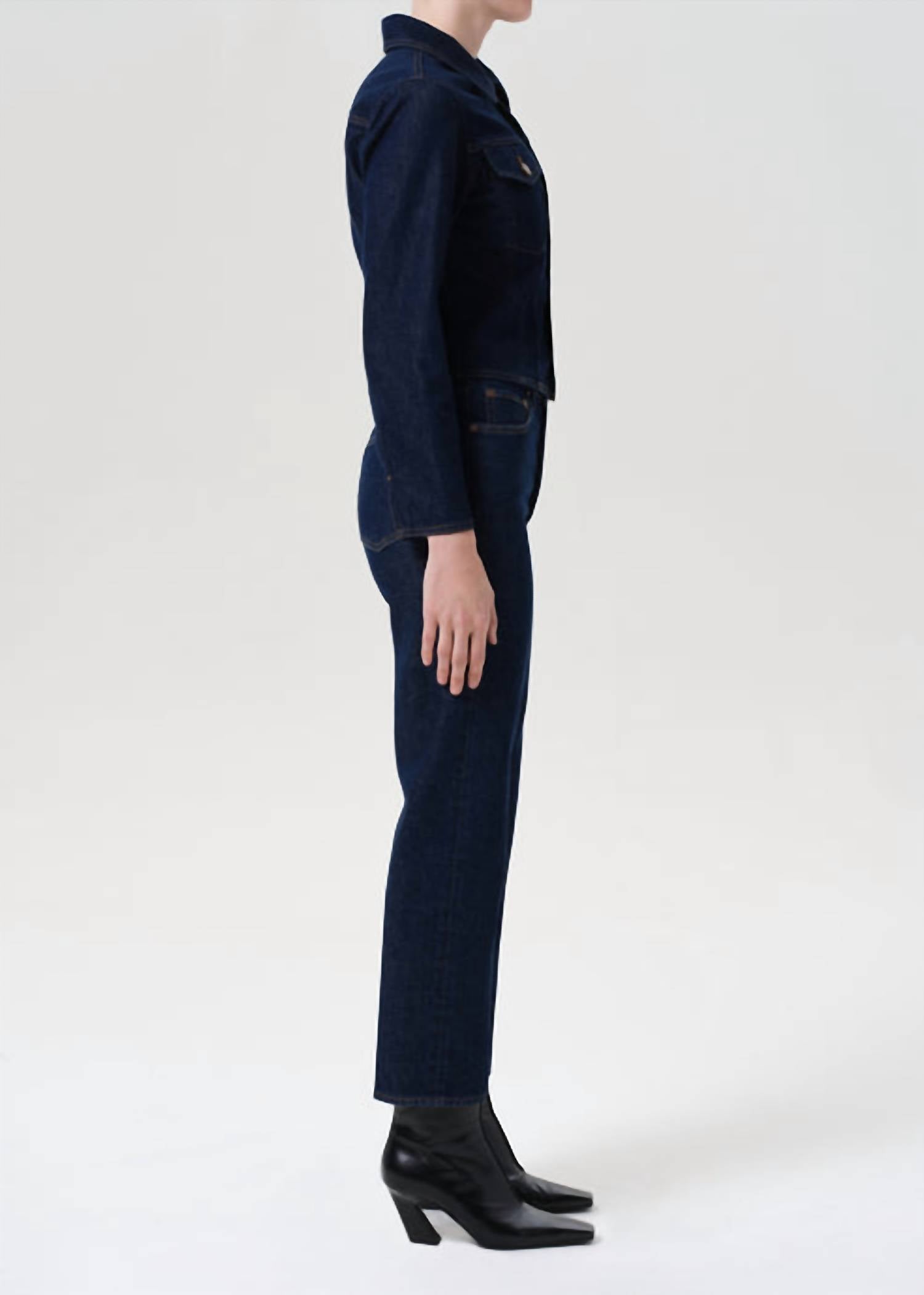 These must-have jeans are fit to perfection. Step back into the 90s with the AGOLDE 90's Pinch Waist Crop Jeans in Reissue, offering a nostalgic yet timeless style. Designed with a high-rise cut, these jeans feature a straight-leg silhouette and are composed of a cotton blend, ensuring comfort and durability. The button fly closure adds a vintage touch, while the solid true rinsed indigo hue and comfort stretch fabric promise all-day wearability. With a rise of 12", inseam of 27.5", and a leg opening of 15.5", these jeans are perfect for your summer vacation wardrobe. Care: Machine wash cold and lay flat to dry. Modeled in size 25 (5' 7.5" height, 34" bust, 26" waist, 37" hips).
