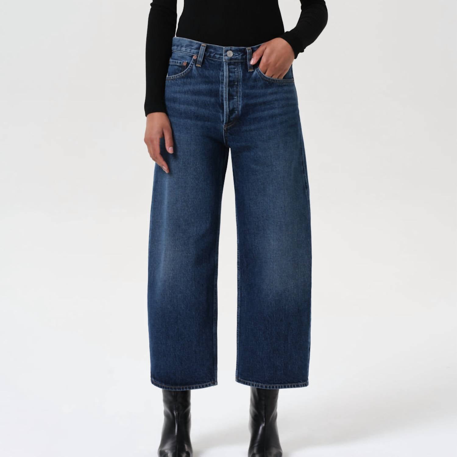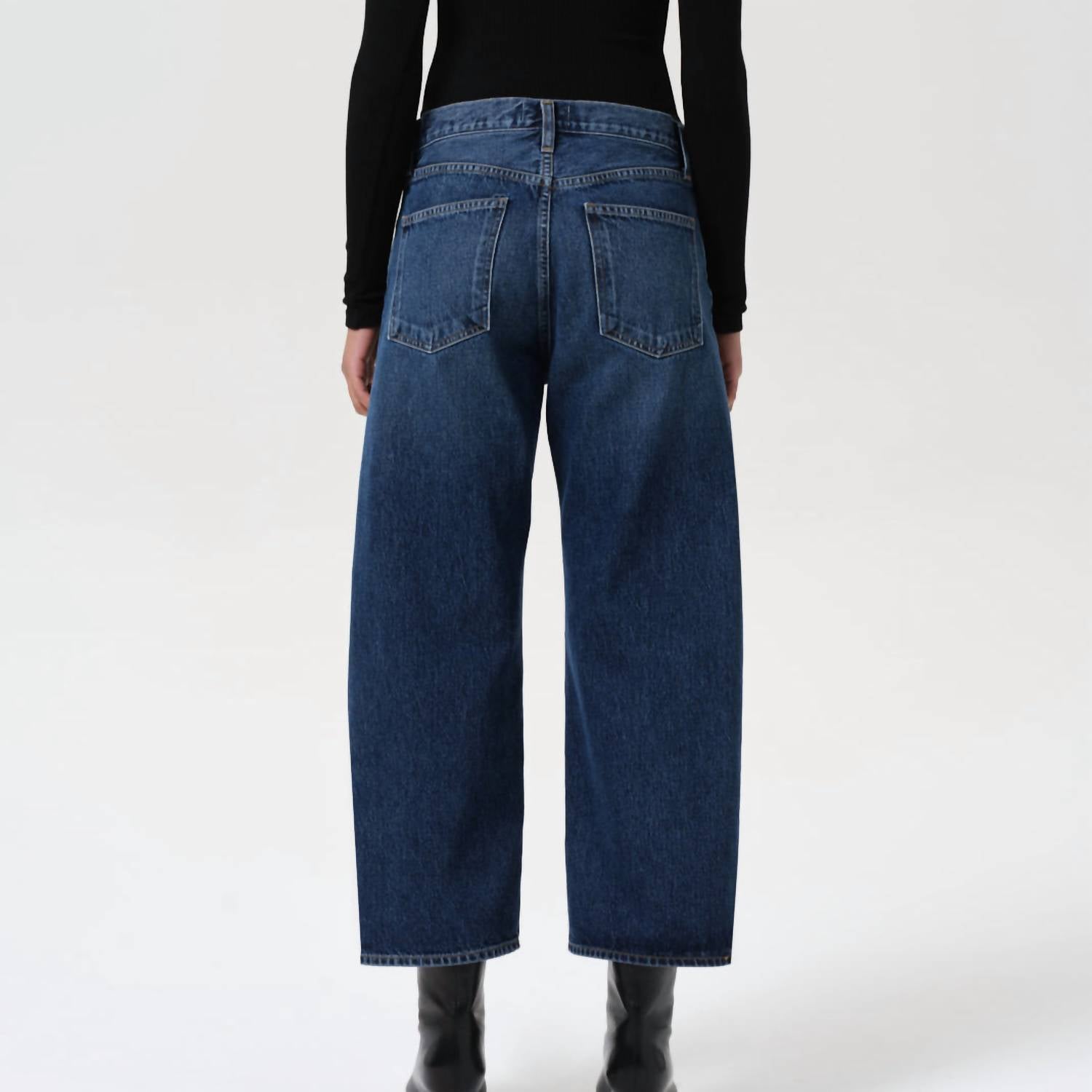 Just as cute as they are comfortable. Introducing the Arc Jean by AGOLDE, a chic blend of style and comfort in Shortwave color. Designed with a relaxed fit and a wide leg, this jean is made from 100% regenerative cotton, featuring a thoughtful bow-leg silhouette and a soft hand feel. Closure: Button fly. Rise: 11". Inseam: 26". Leg Opening: 19 3/4". Care: Machine wash, tumble dry. Perfect for the fashion-forward, these jeans bring a streetwear edge to your spring travel looks.