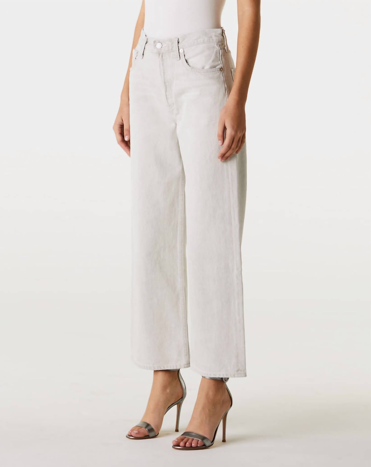 Just as cute as they are comfortable. Elevate your wardrobe with the Ren High Rise Wide Leg Jeans by AGOLDE in the color Colina, designed for women who love a relaxed fit. Made from 100% cotton, these jeans feature a high-rise with a 12.25" rise and a 27.5" inseam, perfect for a sophisticated and minimalist style. Closure: Button closure. Crafted in the United States, they come with pockets and are easy to care for with machine wash and tumble dry instructions.