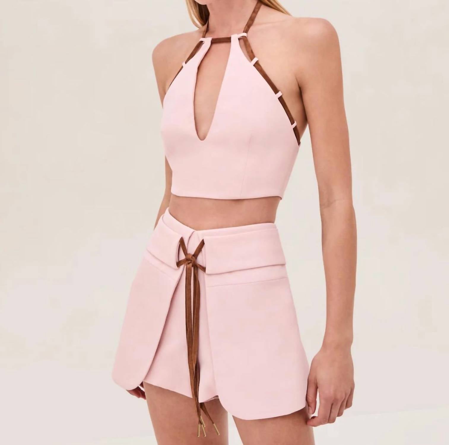 A skirt that you can do just about anything in? We love a good skort, especially this one! Elevate your wardrobe with the Prato Zip Skort by ALEXIS, a chic high-waisted option featuring a stylish overlapping front panel. Crafted from 65% Polyester, 35% Cotton, this pink skort brings a touch of spring-inspired streetwear to your concert ensemble. Designed with a zip closure for easy wear, the skort reflects a modern and versatile aesthetic. Care: Dry clean only for optimal maintenance.