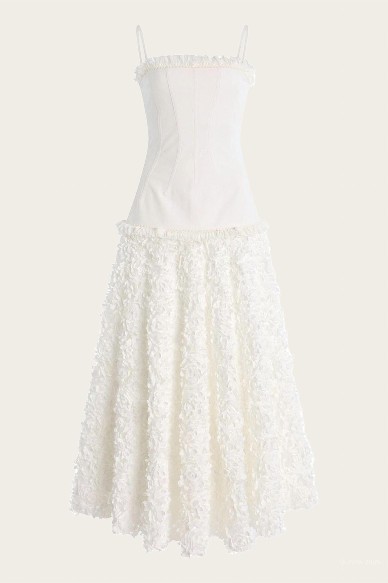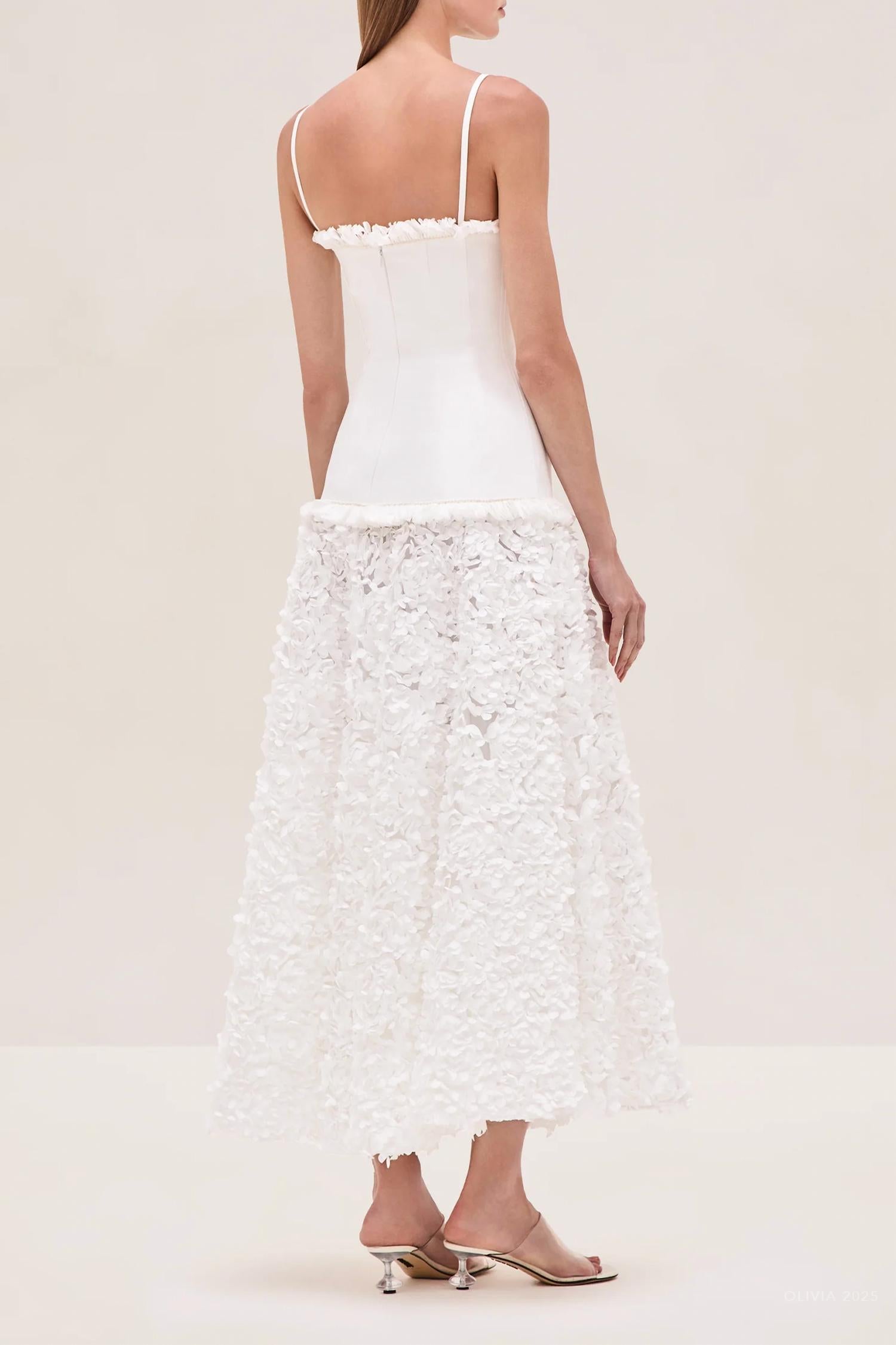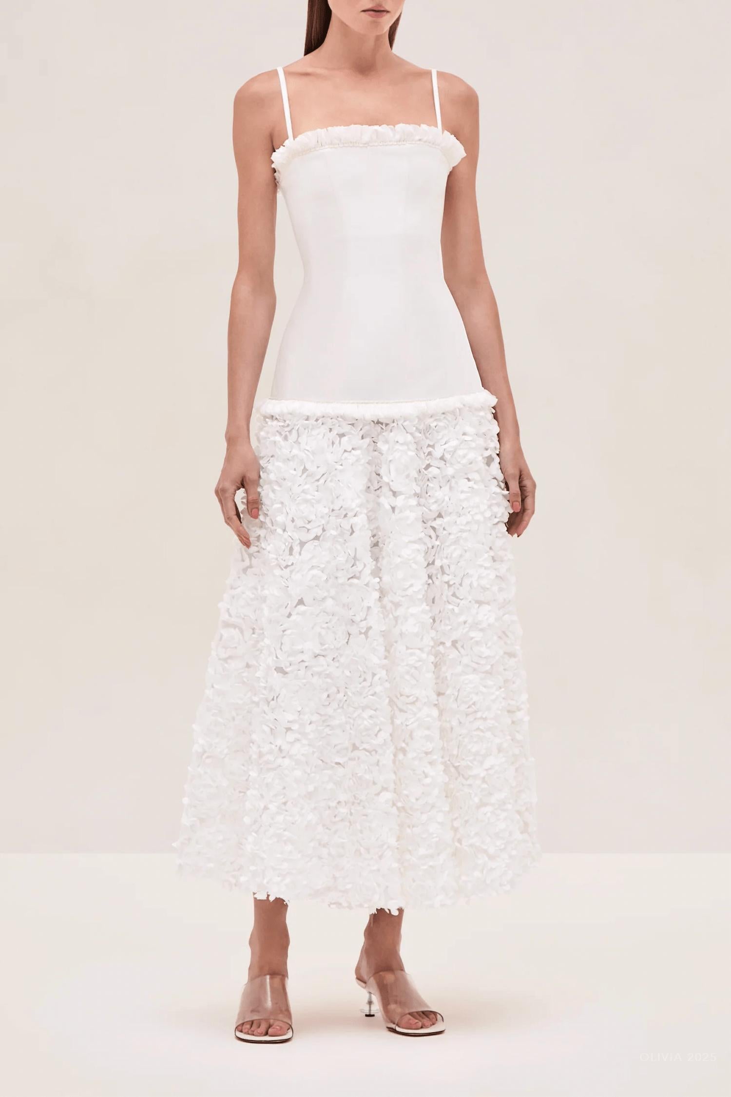 A midi dress so versatile, your options for wearing it are endless. Elevate your evening wardrobe with the Maitland Midi Dress by ALEXIS, a stunning piece for your next elegant event. This dress features delicate spaghetti straps and a flattering A-line silhouette in classic white, perfect for embodying the season's Quiet Luxury trend. Made with attention to detail, it boasts a zip closure for a seamless fit. Please note that this imported piece requires dry cleaning to maintain its pristine condition.