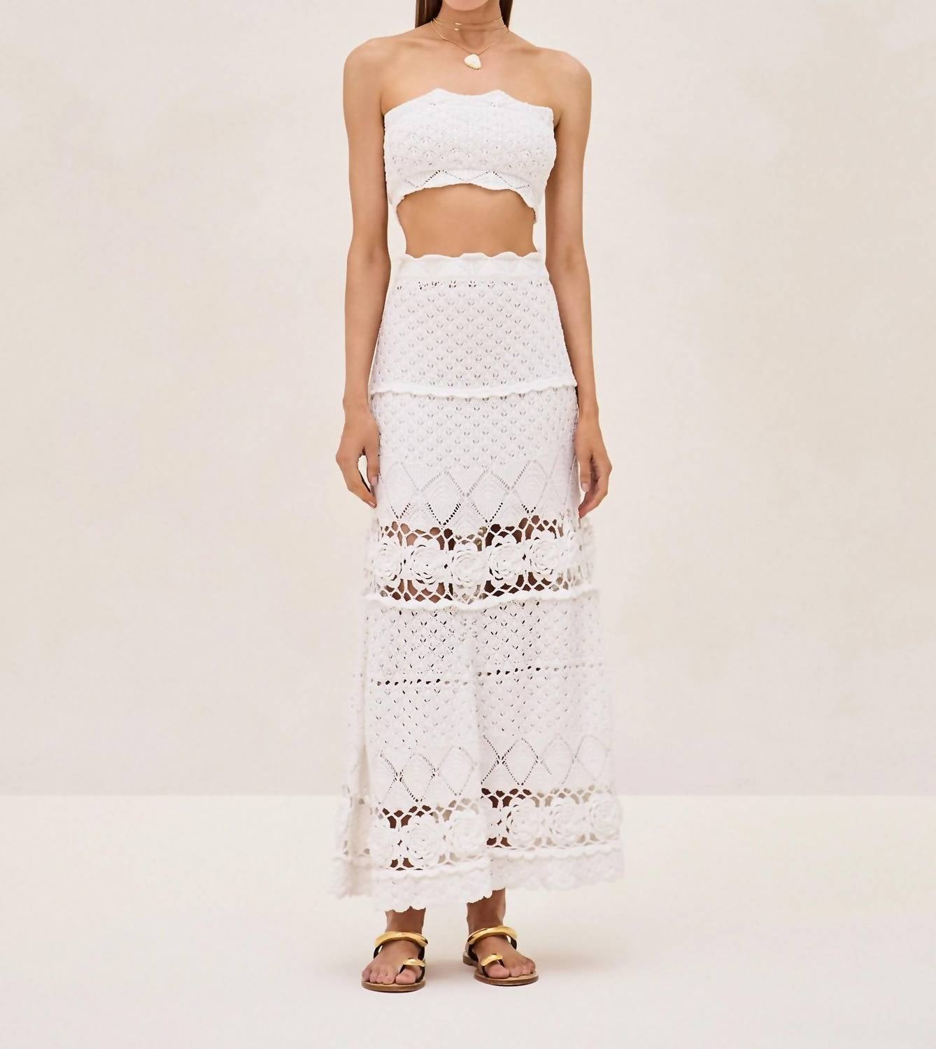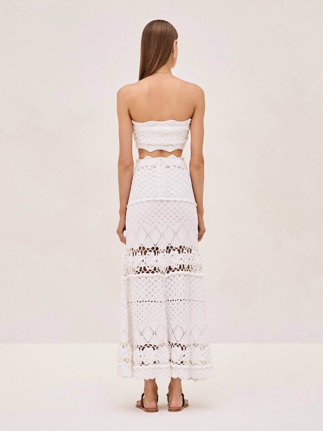 A timeless blouse that will never go out of style. Introducing the Lily Strapless Crop Top by ALEXIS, a chic and textured piece in timeless white. Crafted from cotton with an eye-catching scalloped edge, this top effortlessly embodies minimalist elegance. Closure: Pull-on design. Care instructions: Dry clean only. Model's dimensions: Height 5'10", Bust 34B, Waist 25", Hips 35".