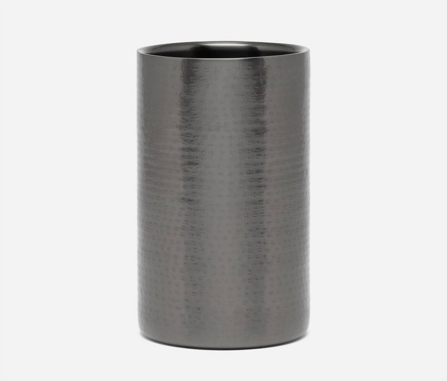 Elevate your bar setting with the Amherst Dark Nickel Wine Chiller by Blue Pheasant, a stunning addition in elegant grey. Crafted from hammered stainless steel, this chic wine chiller measures 8 inches in height and 5 inches in diameter. Perfect for any occasion, this imported piece seamlessly combines style and functionality. For maintenance, simply wash with water and a soft cloth.