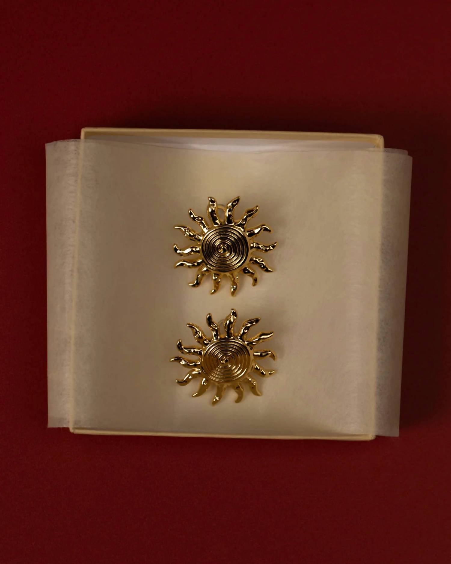 Easy and elegant earrings to complement any outfit. Add a radiant touch to your collection with the Women's Ibiza Sun Earrings by LUV AJ, expertly crafted from brass. These gold statement earrings, measuring with beads of 3mm and 3.4mm, feature a durable 14K gold plating coupled with Rhodium-plated silver, e-coating, and a waterproof, tarnish-free finish. Each pair weighs 13.6 grams and ensures long-lasting shine and quality, being 100% nickel-free and cadmium-free. Ideal for elevating any look, these earrings add a glamorous flair while offering lasting durability and safety.