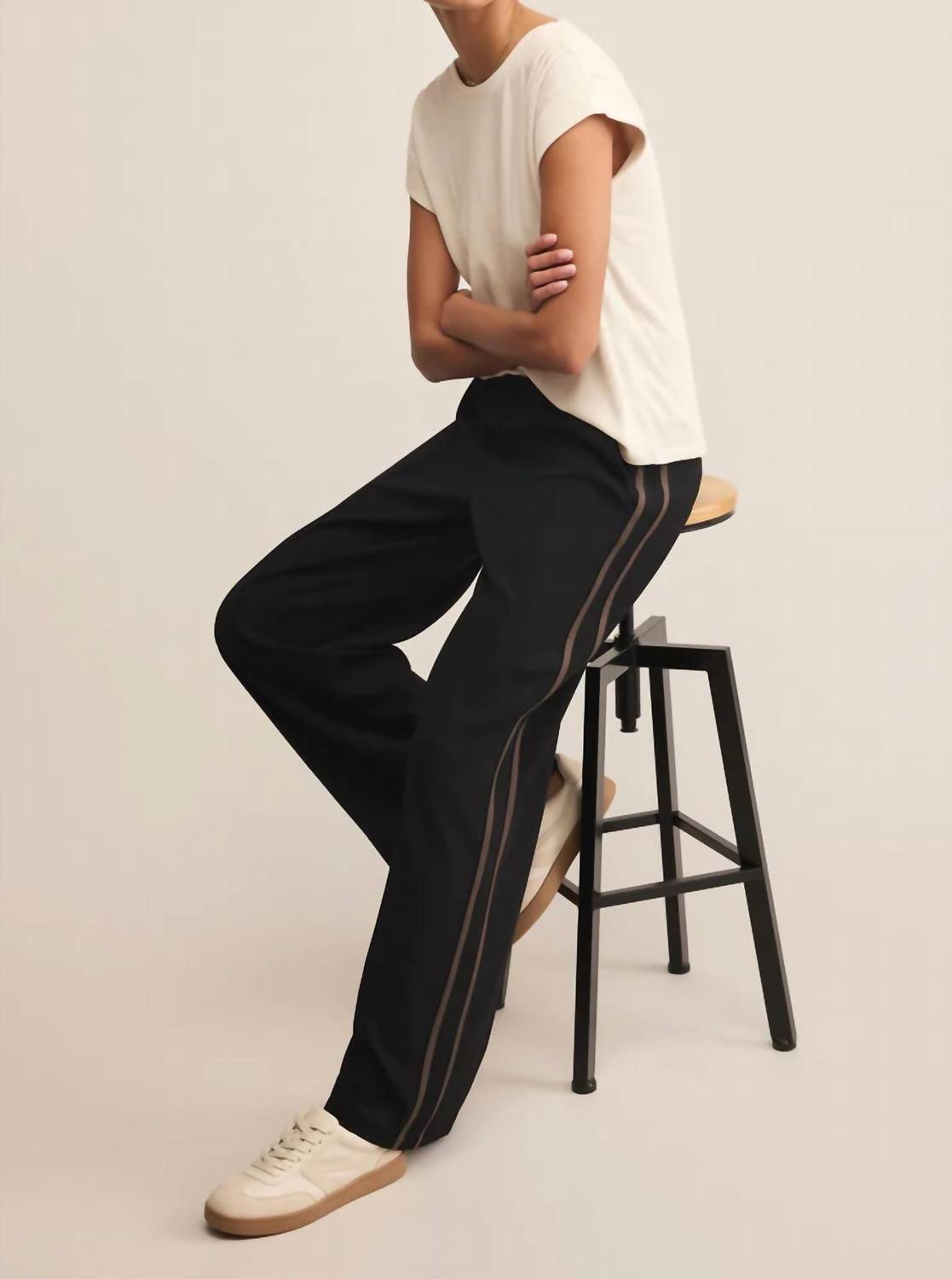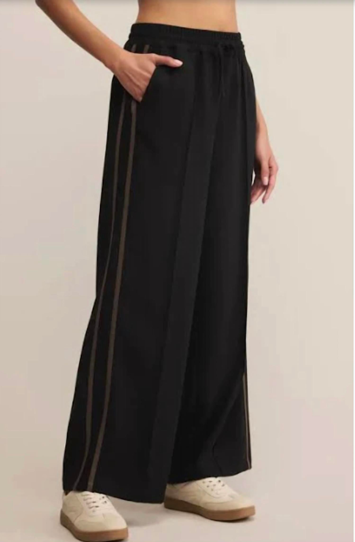 Pair these with your favorite sneakers for an effortlessly cool look. Experience ultimate comfort and style with the Saunder Track Pant by Z Supply, designed for athleisure enthusiasts. These full-length pants feature a high-rise elastic waistband and a relaxed fit with a wide-leg silhouette, perfect for hiking or summer outings. Crafted from crepe 100% modal with a breathable crinkle weave and contrast stripe detail, these pants offer unparalleled softness and flow. Care for your new favorite piece with a hand wash and line dry, or opt for dry cleaning.