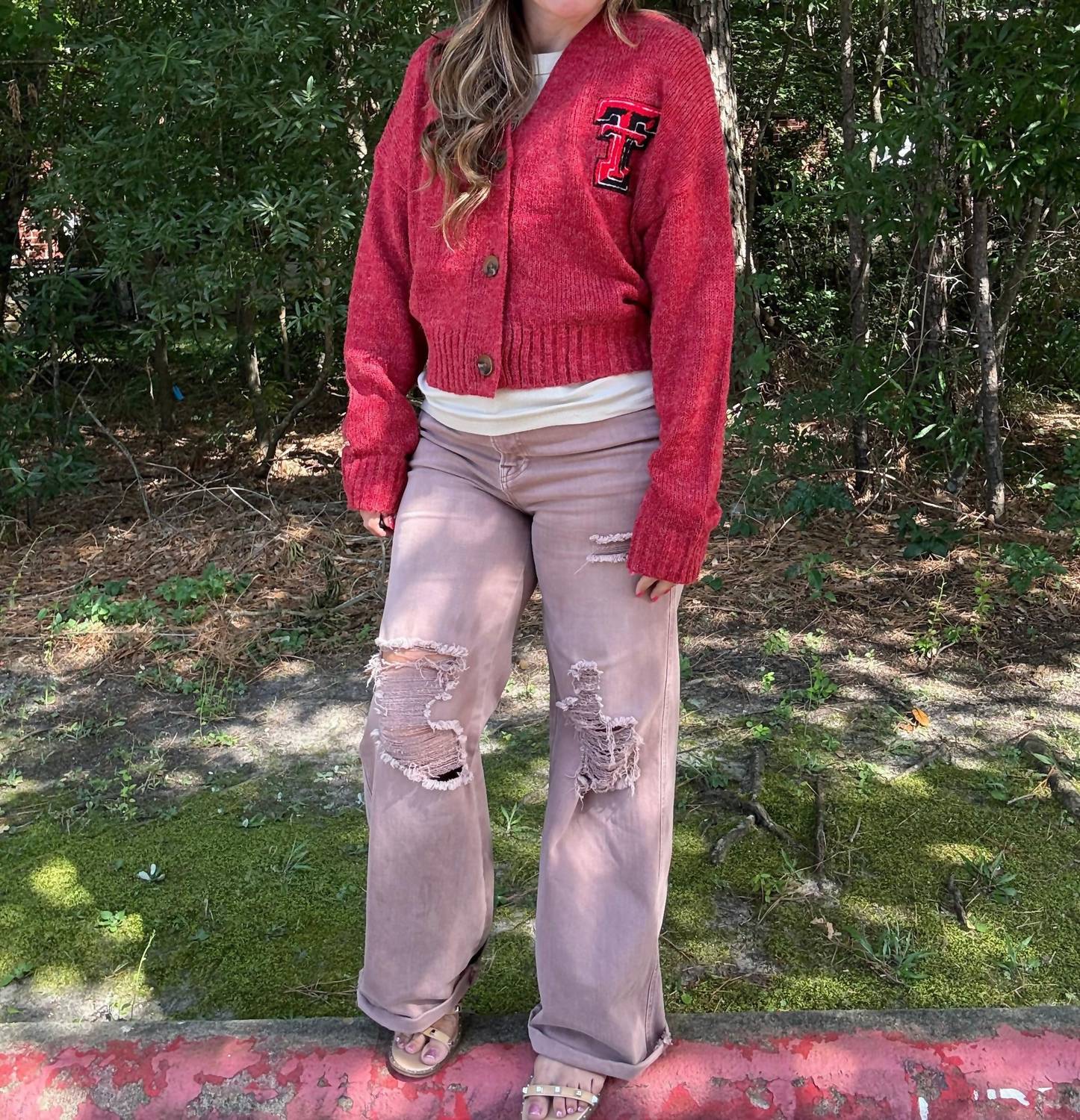 Throw this adorable cardigan over any cami or tank top. Stay stylish and spirited with the Gameday Social Raiders Texas Tech Luxe Chenille Cardigan, perfect for game day and beyond. This textured piece comes in a vibrant red, featuring long sleeves and a v-neckline for a chic, preppy look. Closure: Button closure. Care: Machine wash.