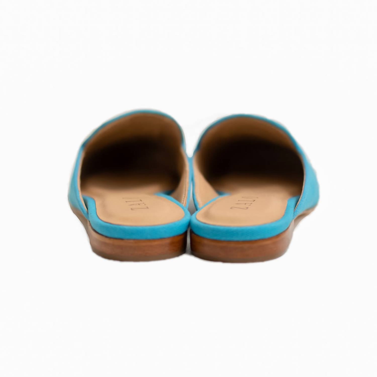 Step into whimsical style with the Women's Flamingo Mule by HOUSE OF ZALO, a true testament to playful elegance. Crafted from turquoise Italian cotton canvas, these mules are adorned with intricate, bright pink flamingo embroidery that adds a splash of fun to your footwear collection. The matching grosgrain trim ties the lively design together, ensuring you stand out with every step. Inside, the Napa leather lining offers unmatched support and comfort, making these mules as functional as they are fashionable. The .75-inch leather stack heel provides just the right amount of lift, while the durable leather sole promises longevity. Plus, the canvas has been treated to be water repellent, so you can enjoy these delightful mules rain or shine. Perfectly marrying quirky charm with high-quality craftsmanship, the Women's Flamingo Mule is an unforgettable addition to any wardrobe.