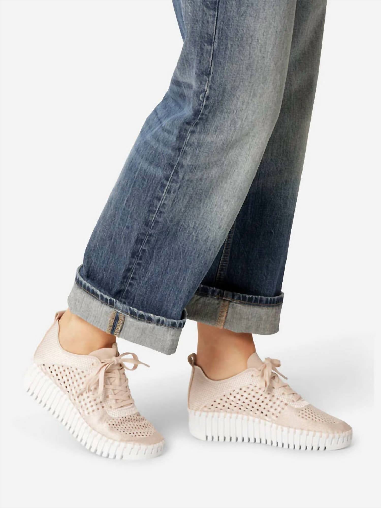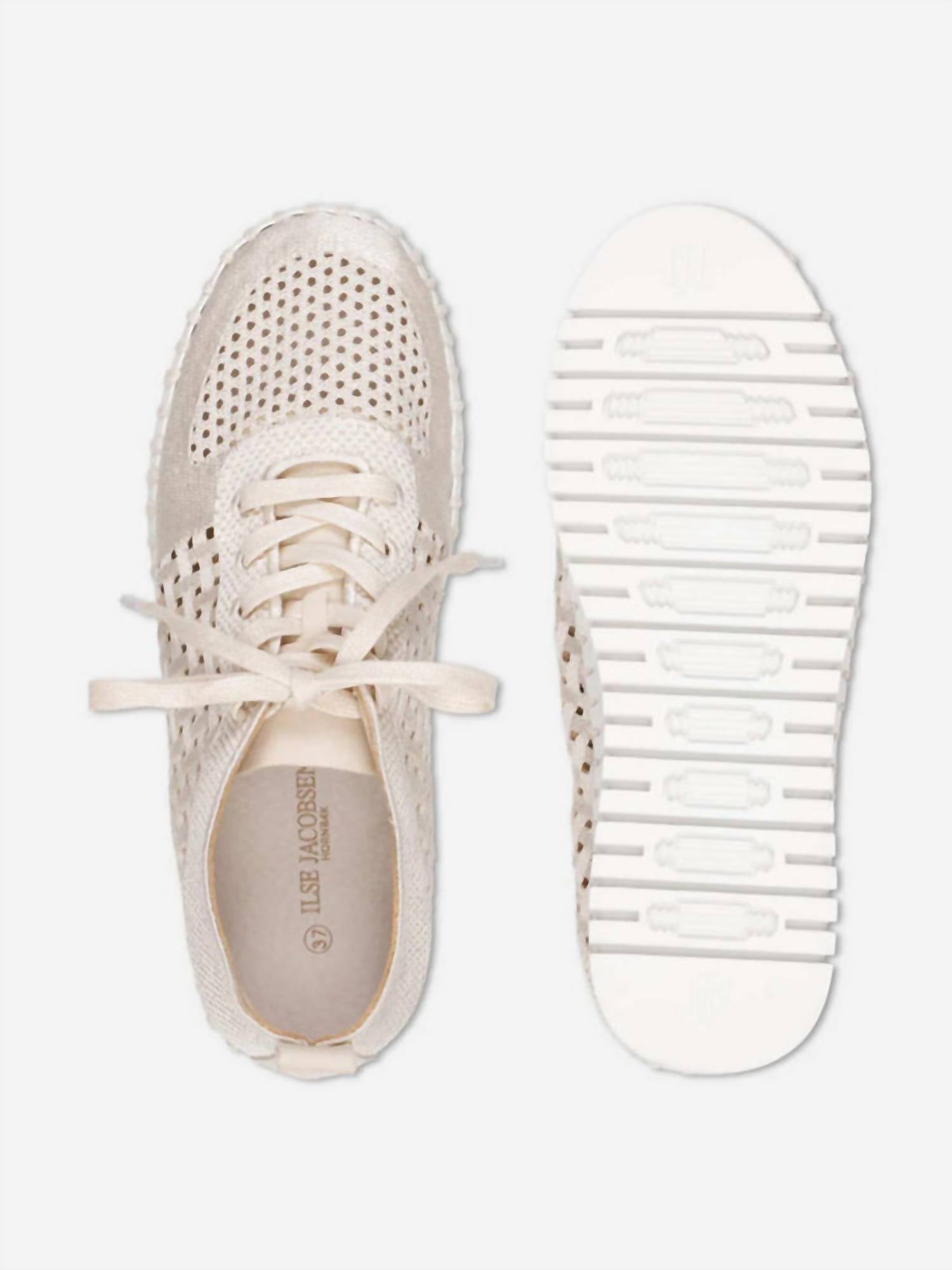 Get your daily steps in with these adorable sneakers. Introducing the Ilse Jacobsen Women's Tulip 4271 Shoe in Kit White—a must-have for travel enthusiasts and streetwear aficionados. This flat-heeled sneaker is designed with a round toe, offering both comfort and style for the fall season. Crafted with high-quality materials, it ensures durability and long-lasting wear. Effortlessly elevate your look with this pair, perfect for any outfit.