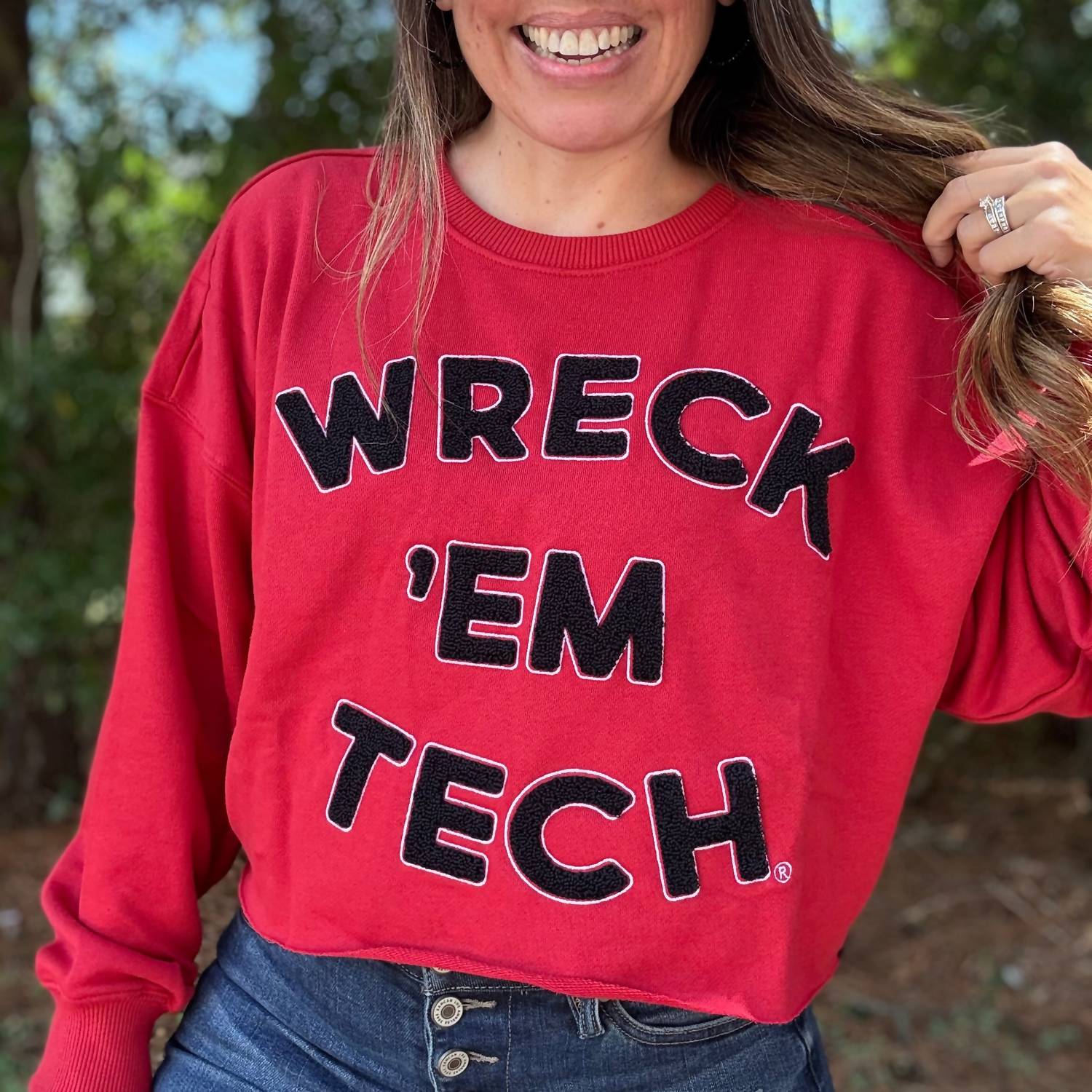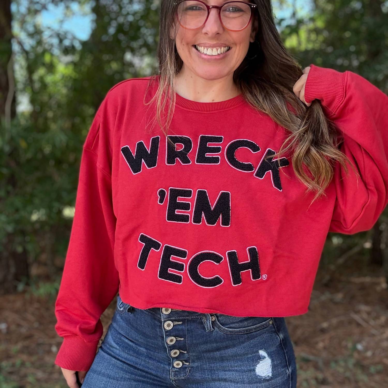 Experience the perfect blend of comfort and style with this trendy crew neck sweater, designed to effortlessly elevate your wardrobe. Pair it with your favorite denim and loafers for the perfect look. Introducing the Texas Tech Red Raiders Perkins Chenille Fleece by Gameday Social, a perfect blend of style and comfort for your collegiate wardrobe. This cropped crewneck features long sleeves, crafted from a 60% cotton and 40% polyester blend, ensuring a lightweight feel. The raw hem and dropped shoulder design add a trendy touch, while the pull-on closure makes it easy to wear. Care instructions: Machine wash. Whether you're cheering on the team or enjoying a casual day out, this piece fits true to size (or size down if in between) and pairs effortlessly with denim shorts and cowboy boots. Model Dana is wearing a size small.