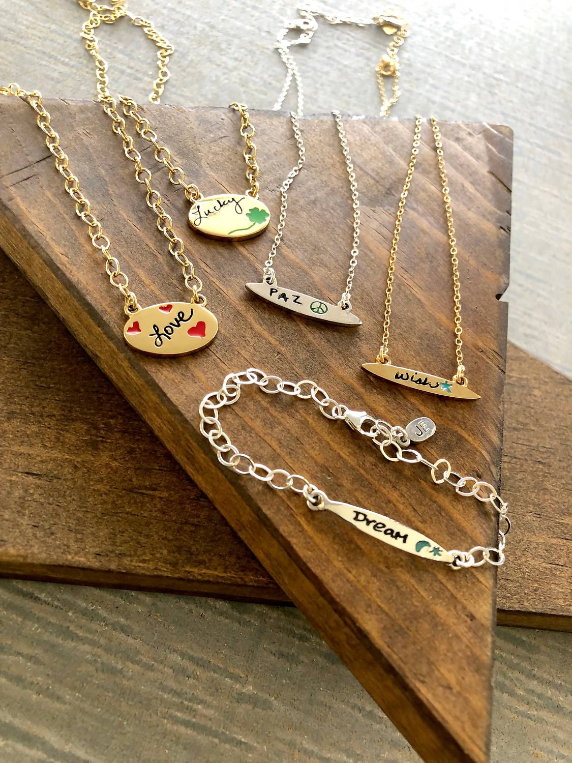 Jessica Elliot - Women's Enamel Oval Necklace - Love