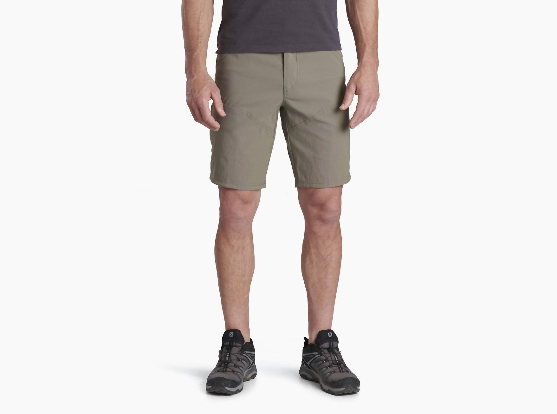 Meet the KUHL Renegade Short, your perfect companion in classic khaki for summer adventures. Crafted from a durable blend of nylon and spandex, these solid, flat front shorts offer comfort and flexibility. Featuring a convenient zip closure, they are tailored for men who appreciate functional design without pockets. Care for these shorts is hassle-free with instructions to machine wash cold with like colors and tumble dry low.