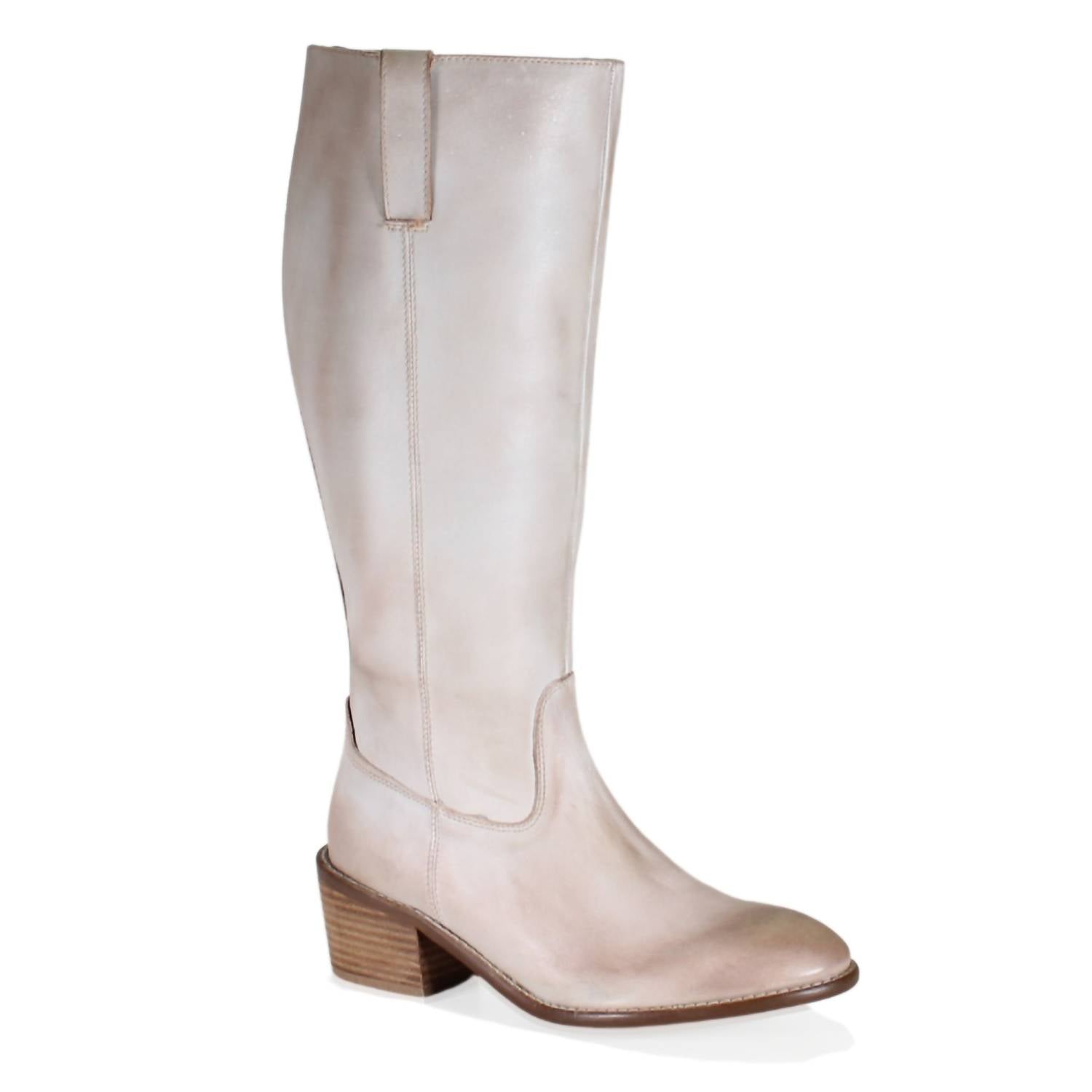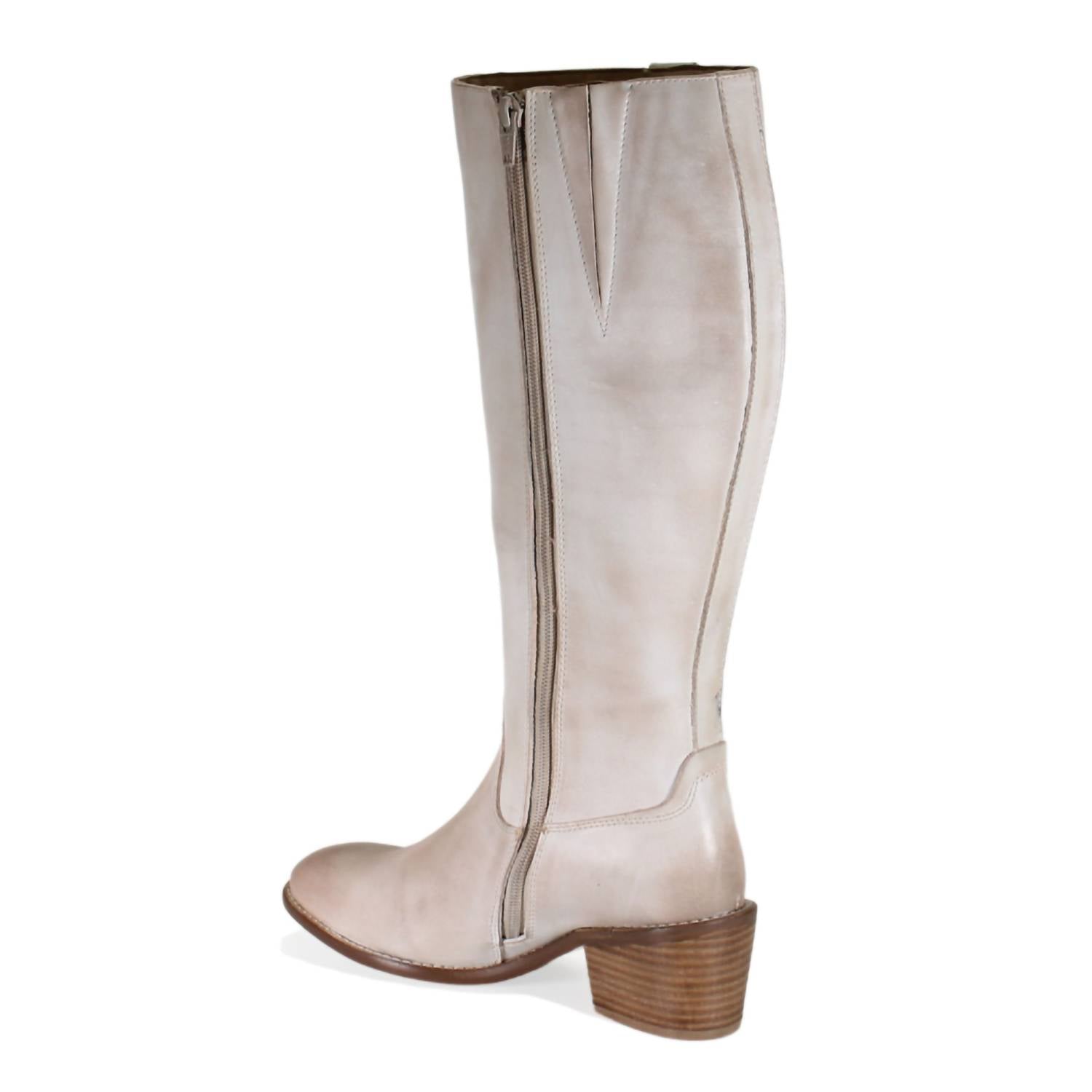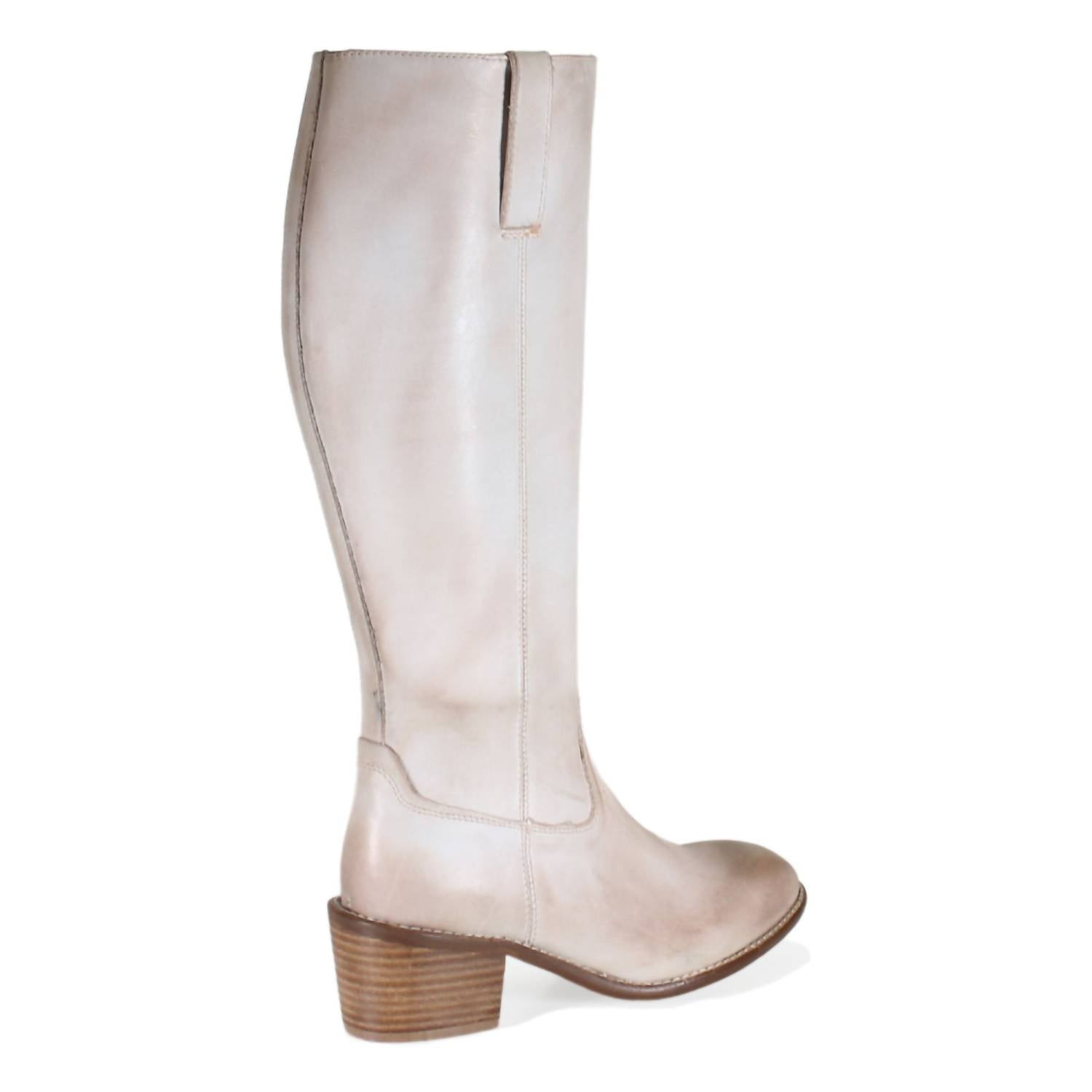 These stylish over the knee boots will look great with denim, dresses or skirts. You can't go wrong! Elevate your Western style with the Women's Fig Garden Western Knee-high Boots by DIBA True. Crafted from genuine leather in an off-white hue, these boots feature a sleek silhouette with a round toe and a 2.25-inch stacked block heel. Designed with a 14-inch shaft height and a 14.5-inch shaft circumference, they incorporate pull tabs and an inside zip closure for easy wear. Perfect for concerts or Thanksgiving gatherings, they blend rustic cowgirl charm with modern sophistication.