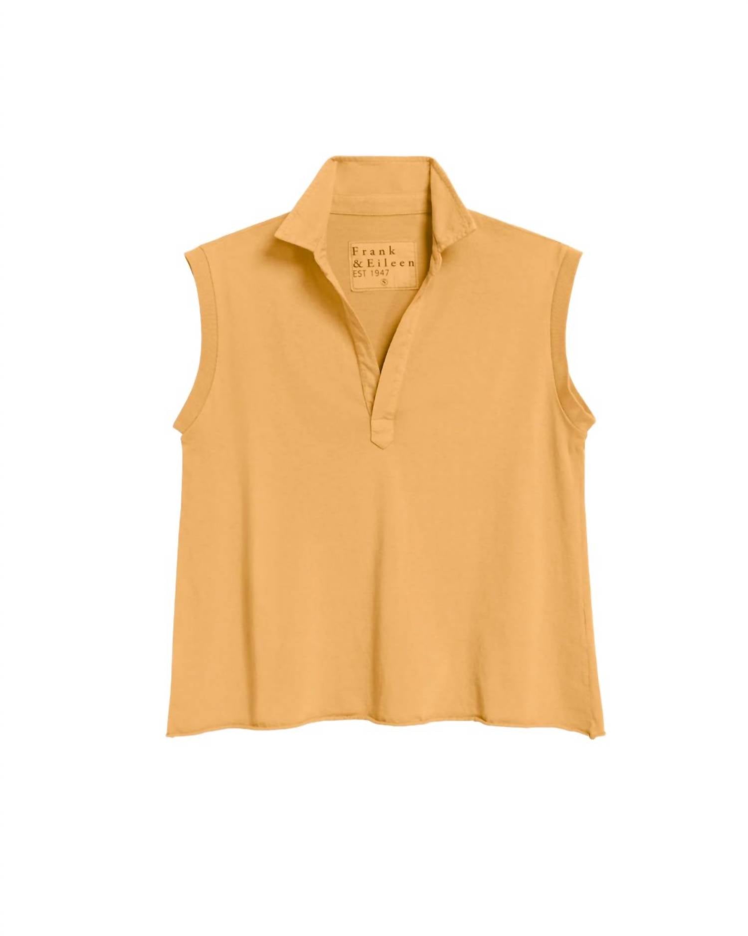 The perfect tank top for those warmer weather seasons. Introducing the Olivia Popover Collar Tank by Frank & Eileen in a vibrant Tangerine hue, perfect for a playful summer wardrobe update. This sleeveless tank is crafted from 100% Cotton and made in the USA, offering preppy perfection with its collared V-neckline and slightly cropped relaxed fit. Closure: Pull on. For care, wash separately in cold water initially, then machine wash cold with like colors and tumble dry on low.