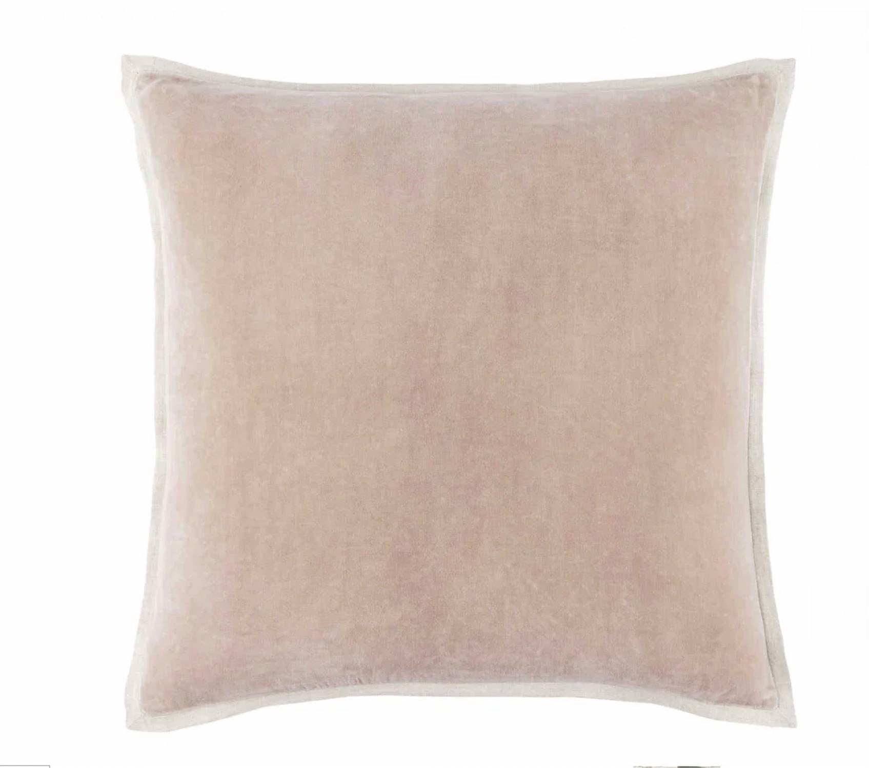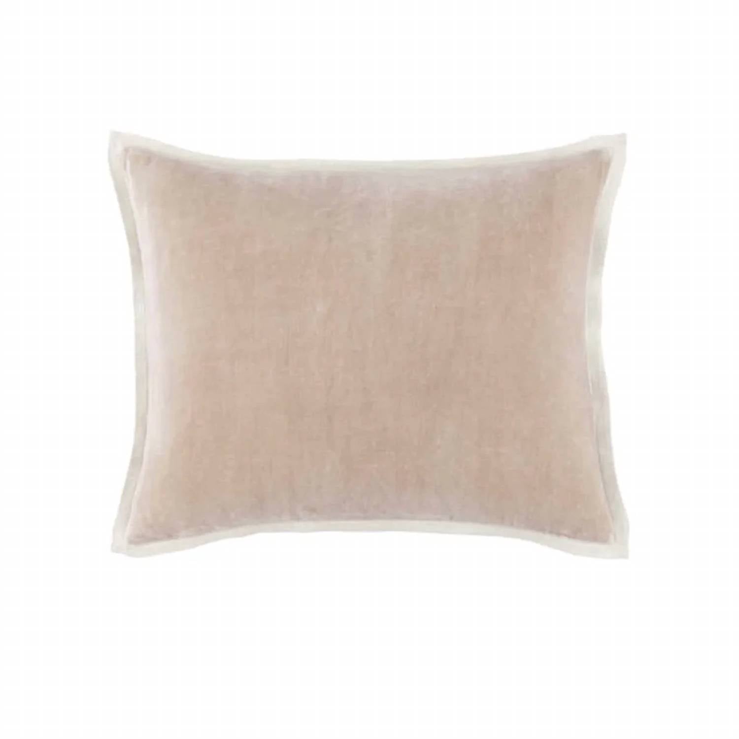 Epitomizing luxurious design in a sophisticated stone hue. Showcases a front crafted from 100% cotton velveteen, complemented by a 1" flanged edge and dyed-to-match 100% linen reverse. Made in India. Features a convenient zipper closure, representing the timeless elegance and innovative simplicity of designer Marie Flanigan.