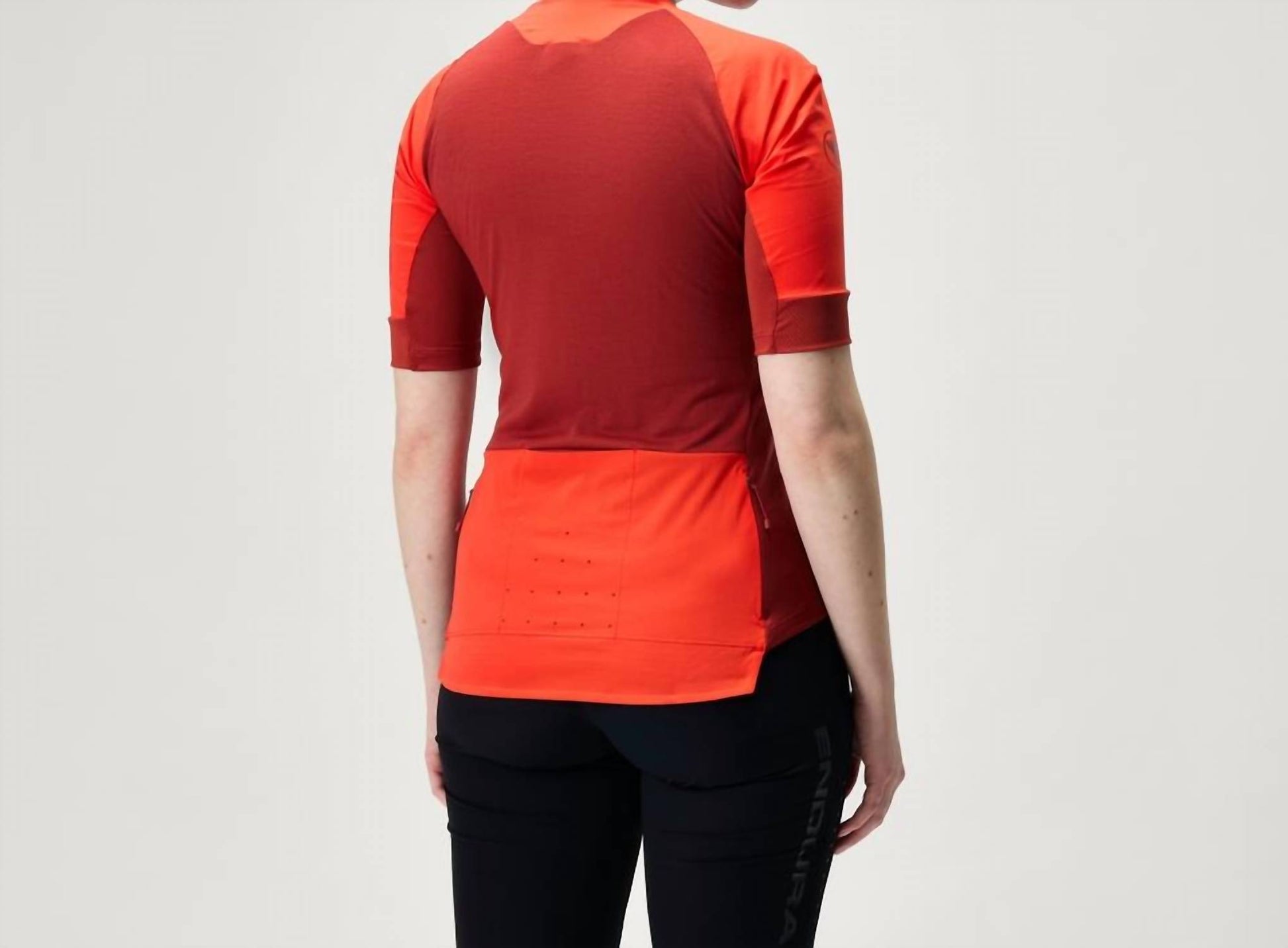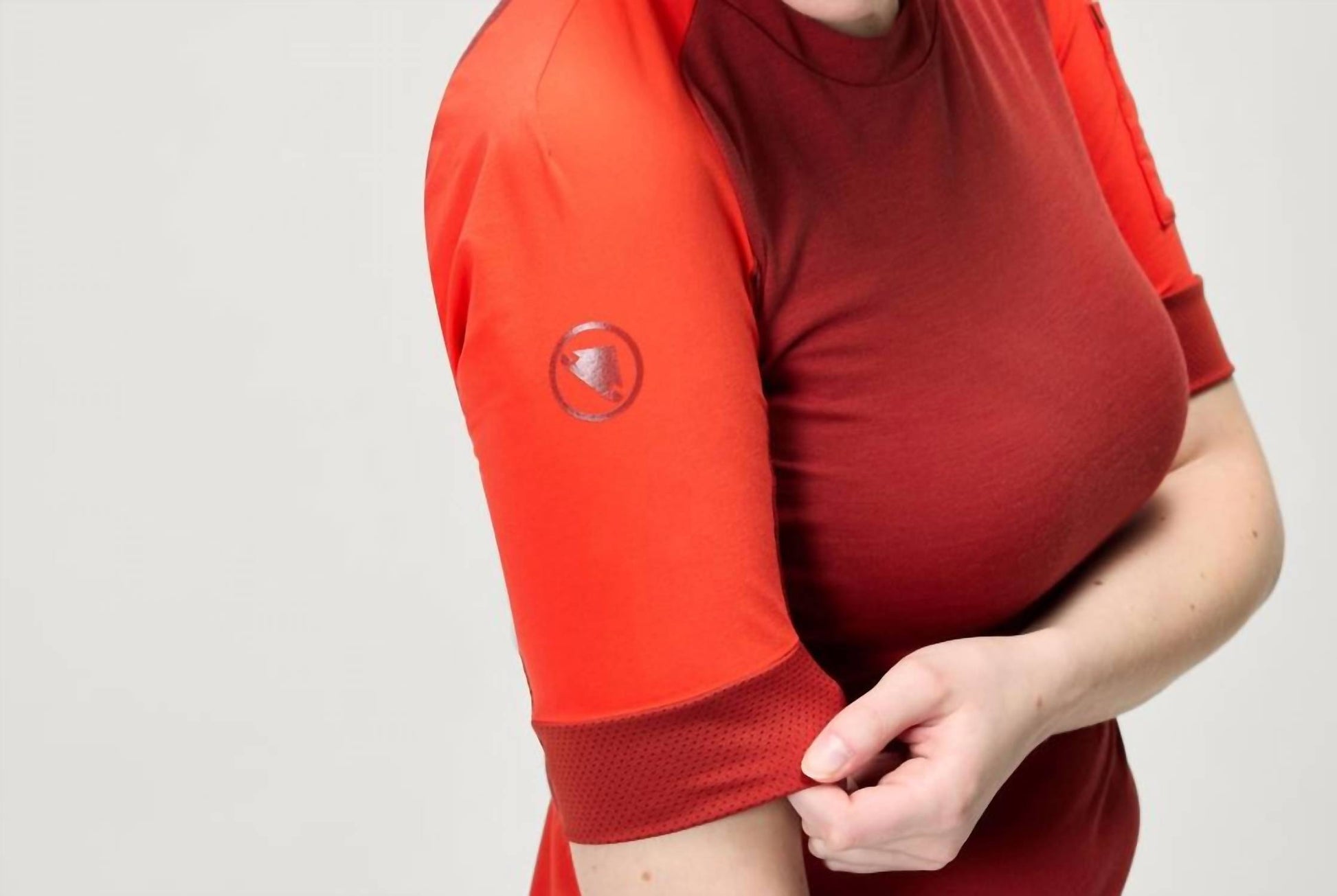 Stay stylish and comfortable on your ride with the Women's Gv500 Short Sleeve Jersey Top by Endura Inc. This jersey combines a lightweight merino-blend knit with super-stretch woven fabric on the sleeves for enhanced durability. Featuring articulated sleeves for a bike-ready fit and critically positioned mesh panels, this top ensures breathability and freedom of movement. 50% Polyester, 10% Elastane. Machine wash and tumble dry.