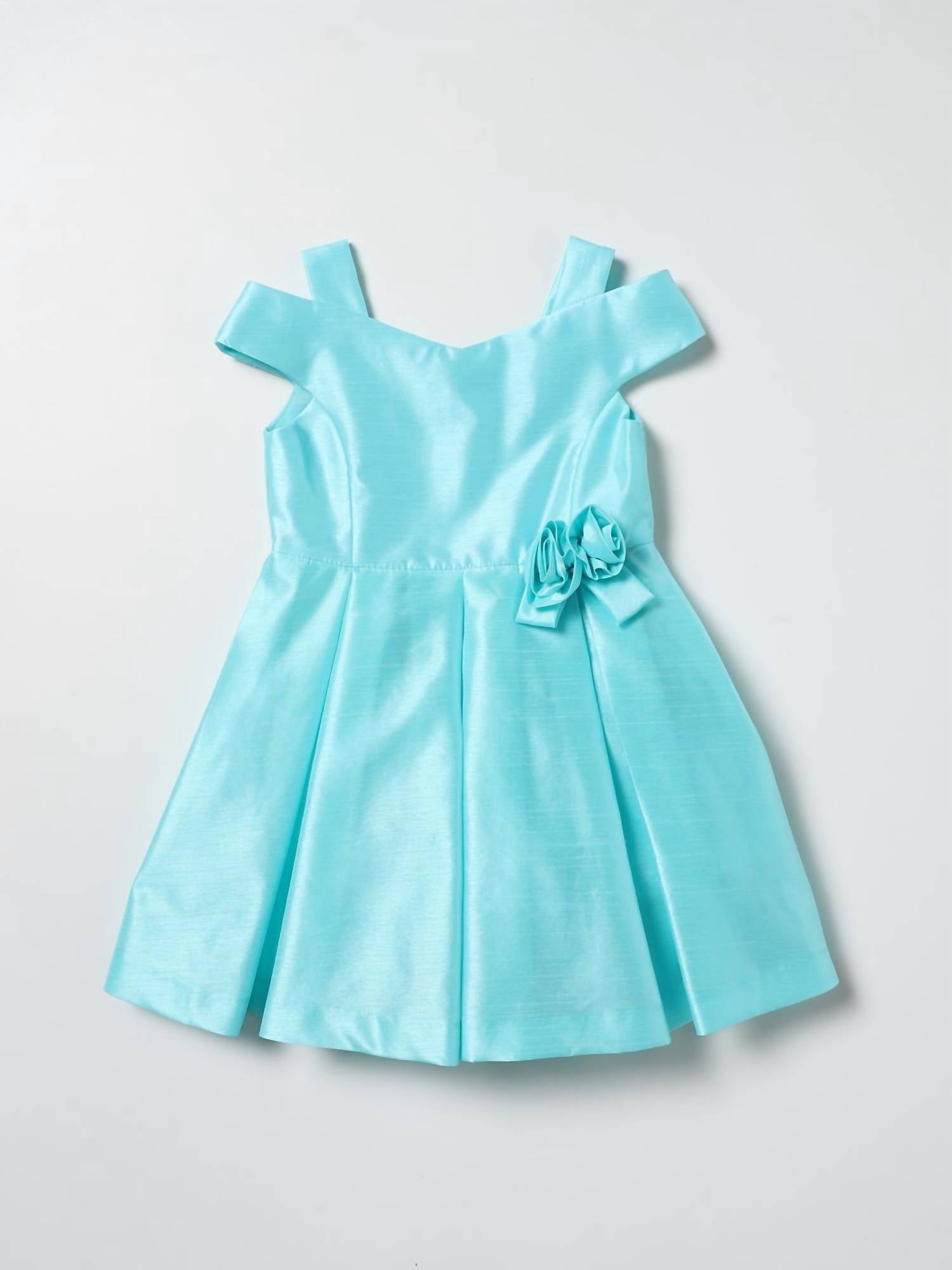 Introduce elegance to your girl's wardrobe with the Abel & Lula Girls Turquoise Shantung Special Occasion Dress. Perfect for baby showers and Christmas events, this solid turquoise dress features a luxurious bow applique. Embrace a sense of quiet luxury aligned with the latest summer trends. Care for this stylish piece with a professional dry clean.
