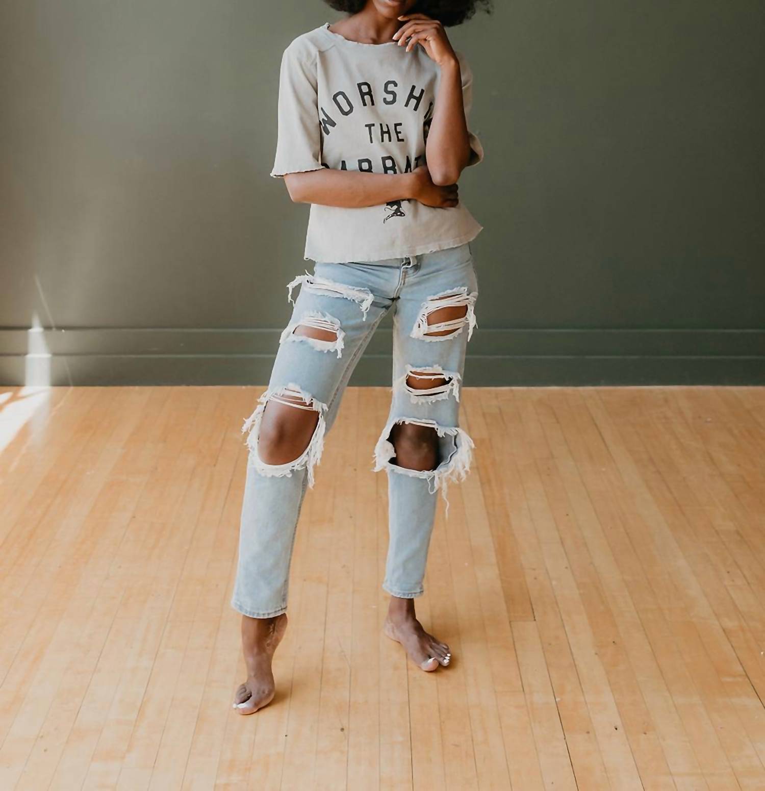 This classic, short sleeve tee will be your go-to staple this season and beyond. Experience ultimate comfort with the Black Sabbath Worship The Sabbath Tee by People of Leisure, designed in a versatile gray. Crafted from 100% organic cotton, this short sleeve top features graphic details with a crewneck design, perfect for relaxed days. Ethically made in Los Angeles, CA, it offers a pull-on closure for easy wear. Care instructions recommend machine washing cold or warm and tumble drying on low. Available in sizes S-XL.