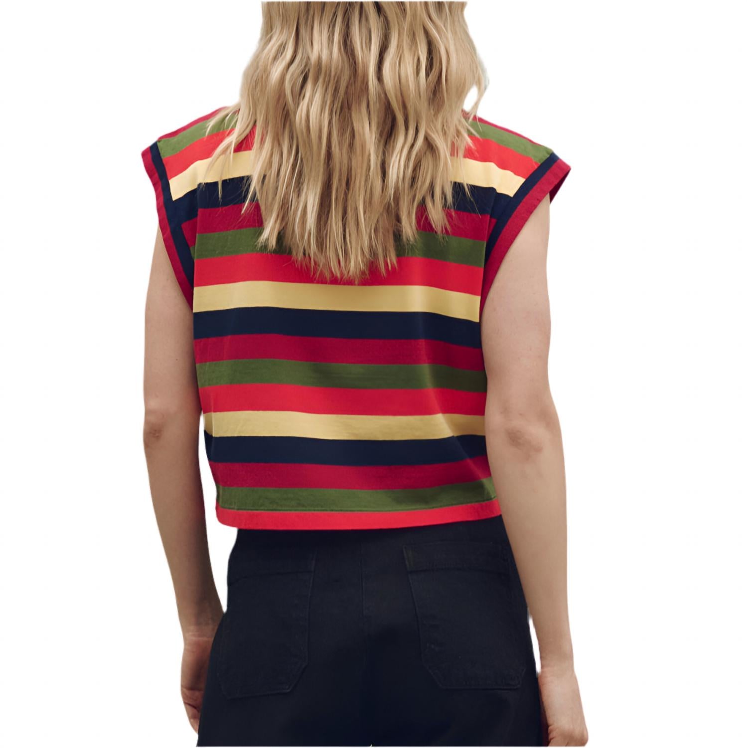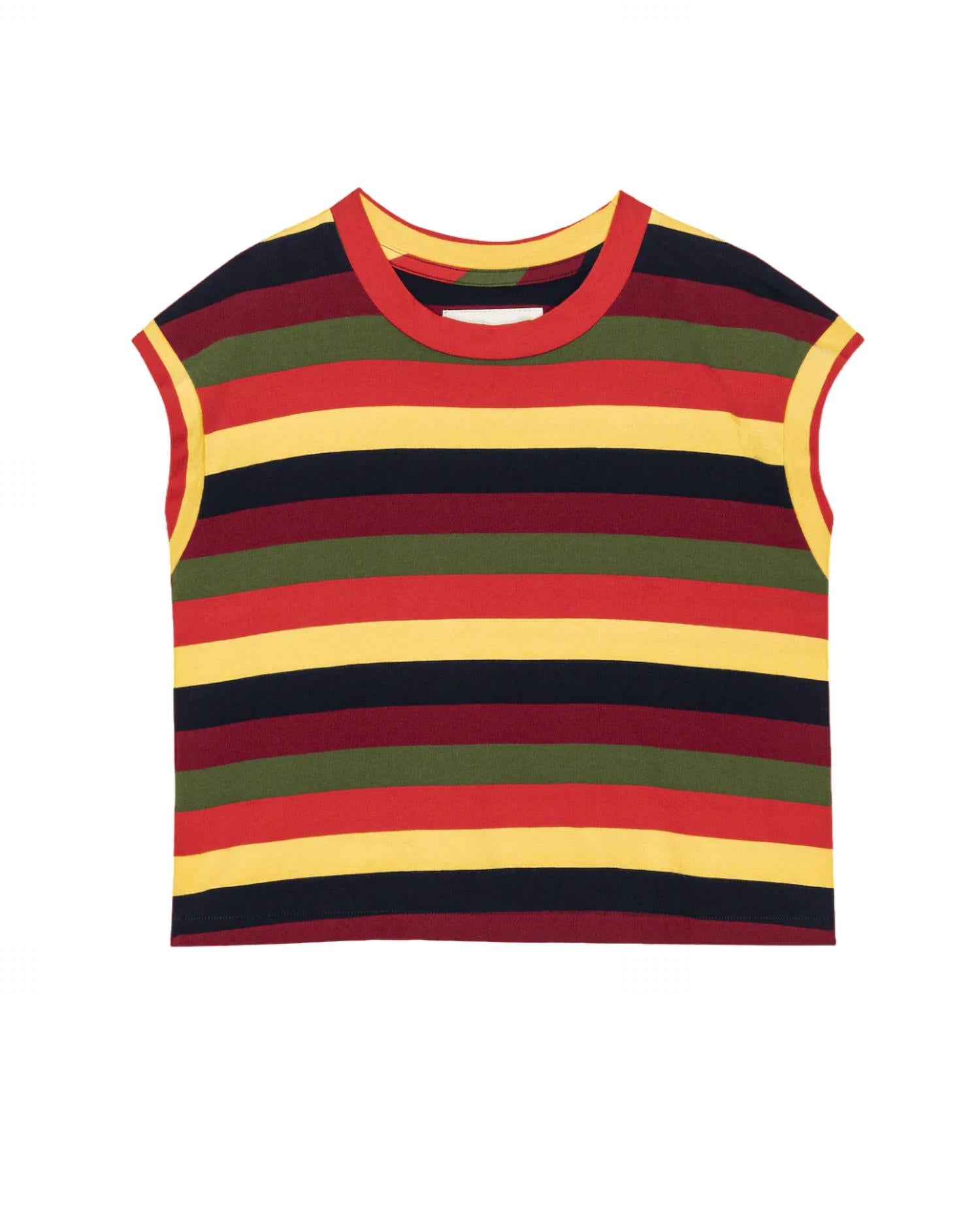 Show a little skin in this cute and casual crop top. The Women's The Square Top by THE GREAT. is a sleeveless crop top made from 100% Cotton, offering comfort and breathability with a touch of nostalgia. Inspired by vintage athletic tees, its boxy, slightly cropped fit is perfect for pairing with high-waisted denim or trousers. In a playful Playa Stripe pattern, this top features a crew neckline and ribbed finishes, embodying summer streetwear vibes. Handcrafted with care in L.A., each piece is unique. Model is 5'8" and wears size 1.