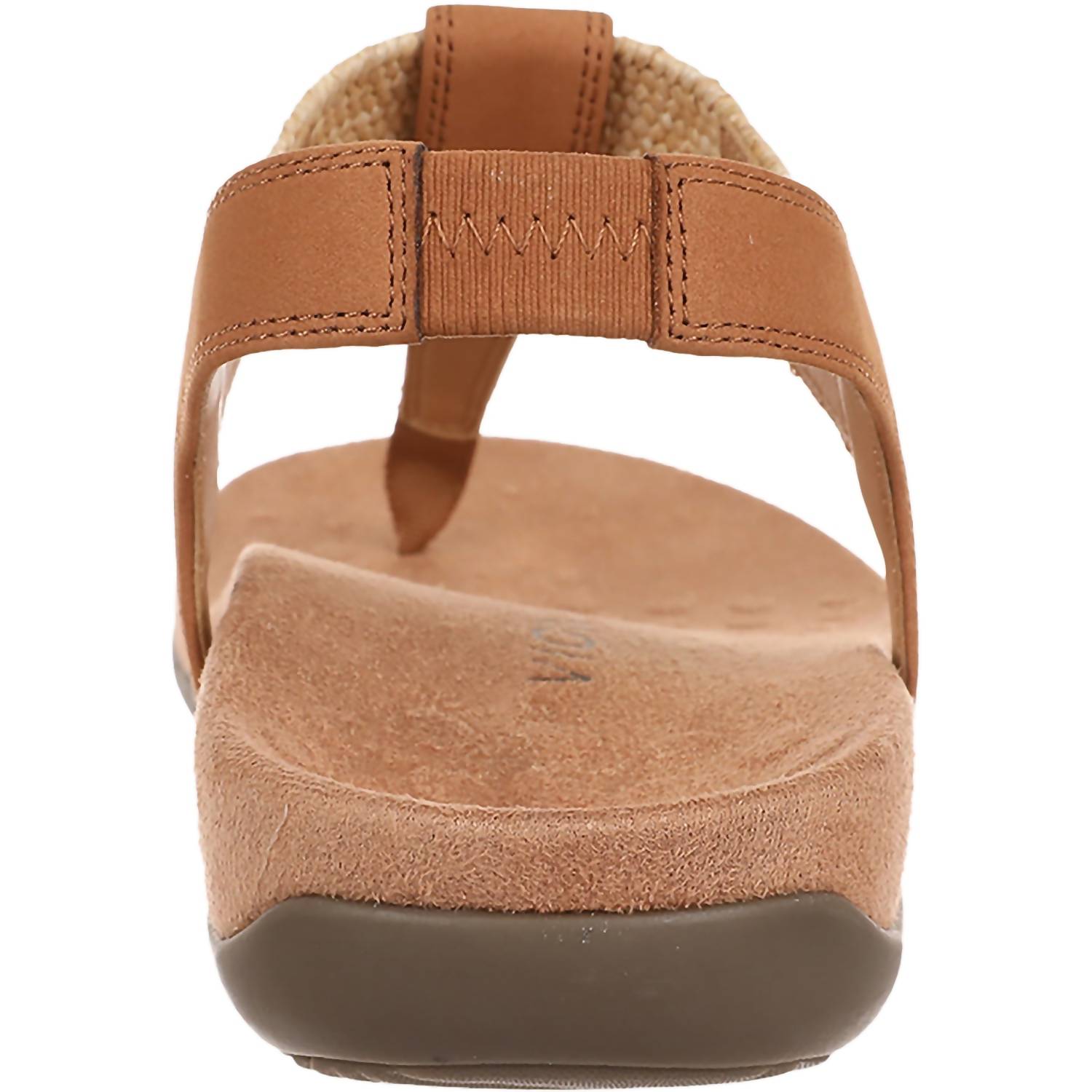 This sandal will take you from brunch to dinner and everything in between. Step into comfort and style with the Vionic Women's Brea Nubuck Leather Sandals in a chic camel hue. These sandals feature a leather and synthetic upper paired with a microfiber-covered footbed for a soft feel, while the lightweight EVA midsole reduces stress on your feet, ankles, and knees. Completed with a durable rubber outsole, these sandals provide excellent traction, making them perfect for summer vacations or 90s inspired outings. With an adjustable elastic ankle strap and round toe design, they offer biomechanical support to help alleviate heel pain. Designed in a medium width with a flat heel under 1 inch, these sandals are your ideal partner for casual outings.