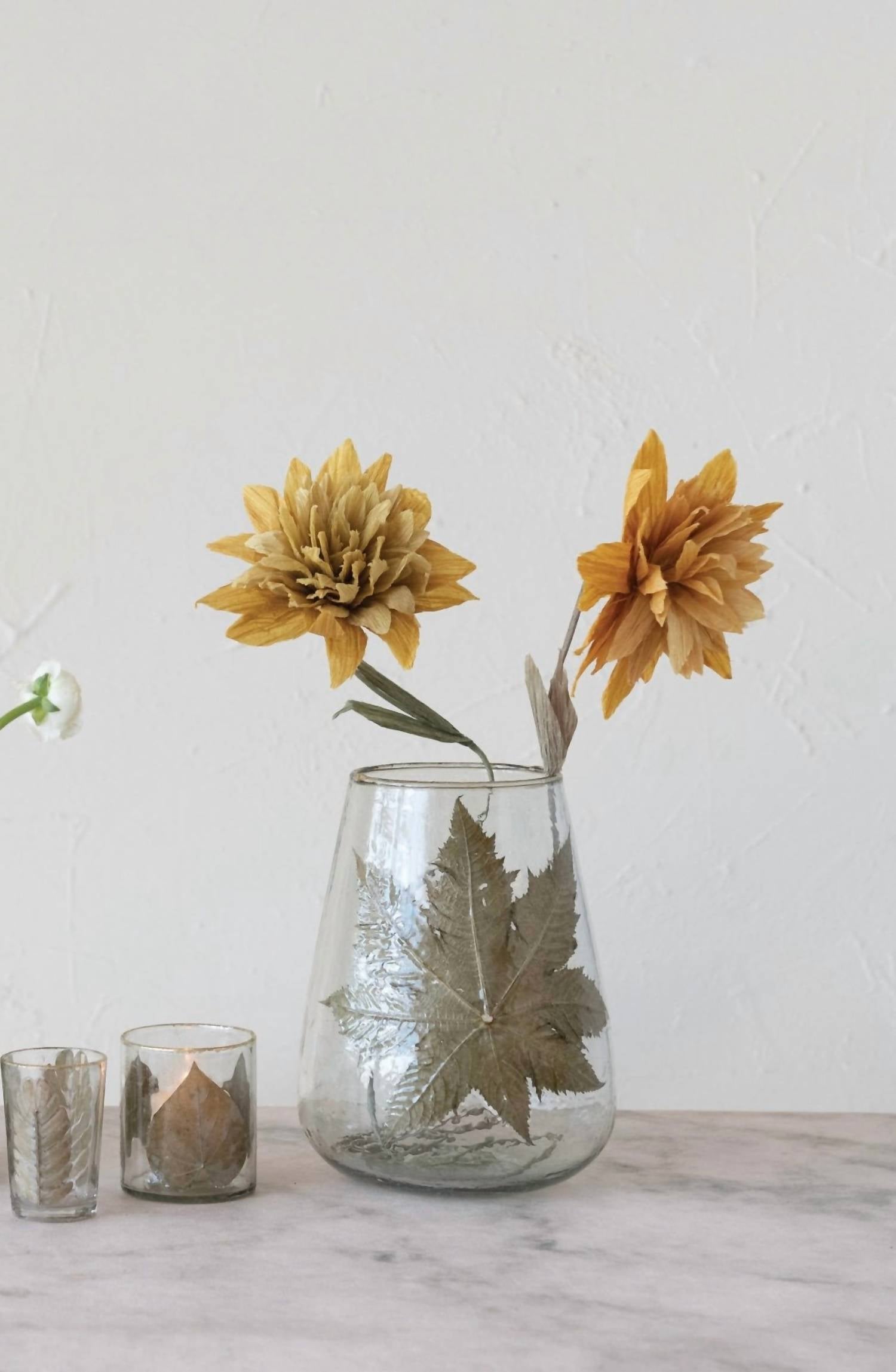 Creative Co-Op - Blown Glass Hurricane with Pressed Leaf