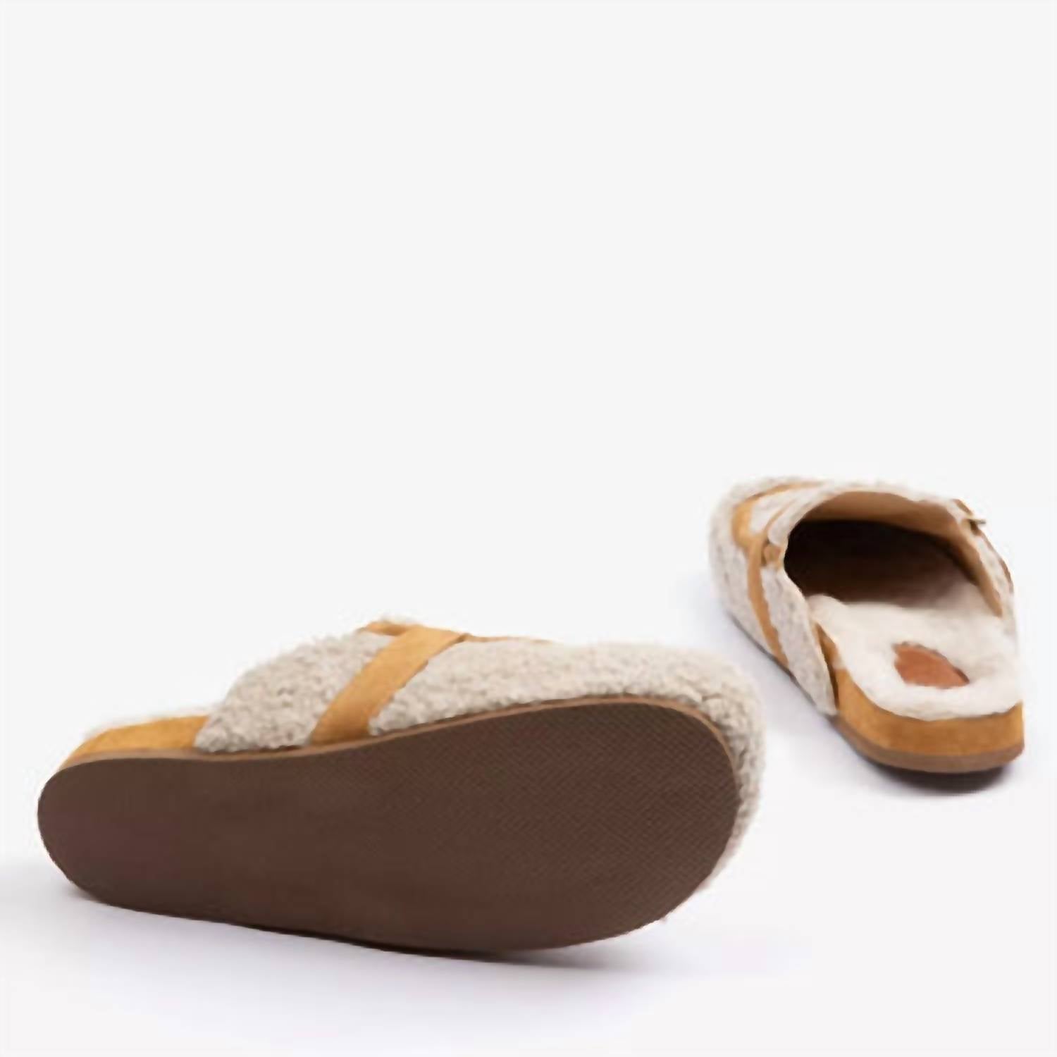 Flowy dresses, cropped pants, and even jumpsuits... this sandal works with them all! Introducing the Women's Storm Wool-lined Slide Sandal by PENELOPE CHILVERS, a cozy companion for winter escapades or relaxing at home. With a soft fleece upper, this sandal features moccasin-inspired detailing and an adjustable suede strap for added character. Comfort is prioritized with a shearling-lined insole atop an ergonomic suede-covered cork footbed, complemented by a durable rubber sole. Perfect for pairing with stripe socks or wearing barefoot as Spring approaches, this sandal embodies a minimalist trend in a versatile bone color.