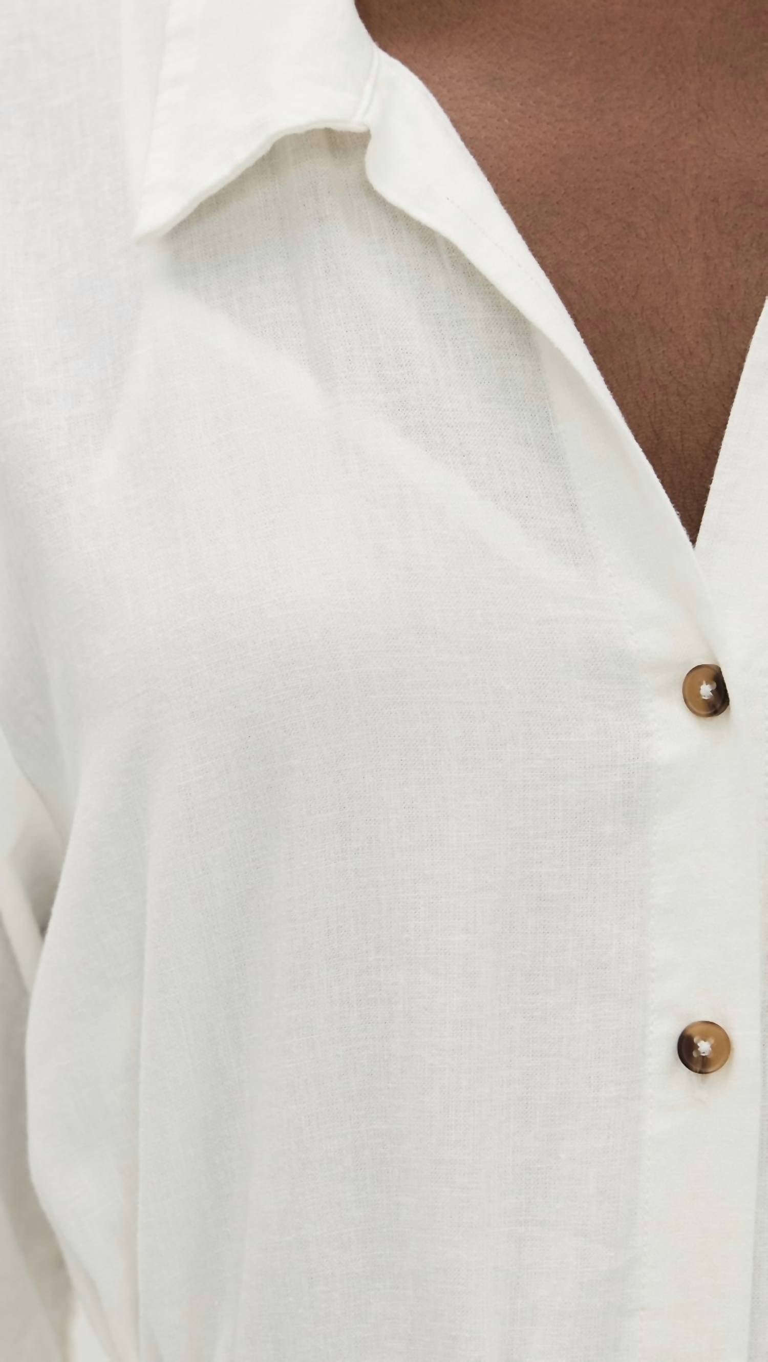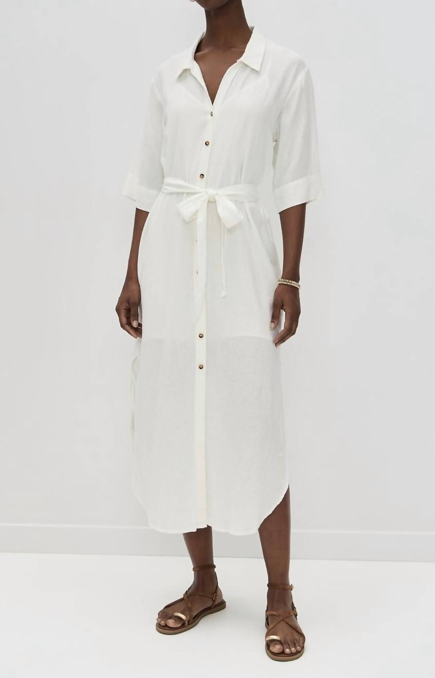 The perfect length dress does exist. The Brise Linen Midi Dress by Z Supply offers a breezy elegance perfect for summer vacations. Sporting elbow-length sleeves and a collared neck, this shirt dress features a button placket for a classic silhouette. With a linen blend composition of 55% linen and 45% rayon, this dress hails from China and ensures comfort with its lightweight, non-stretch weave. Care instructions include a machine wash option, with a length of 50 inches (127 cm) from shoulder for a flattering midi fit.