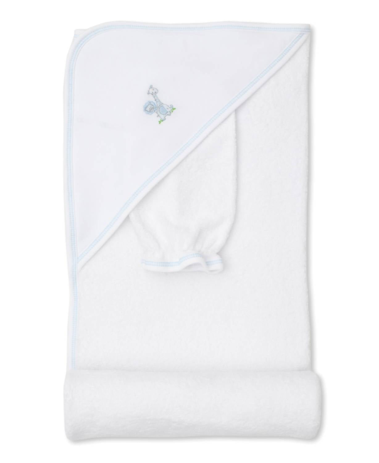 Kissy Kissy - Baby's Gingham Jungle Hooded Towel With Mitt Set