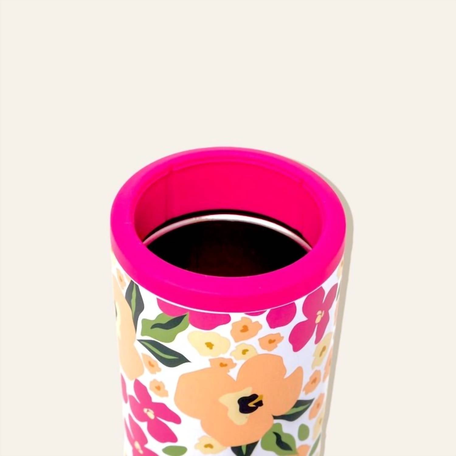 Introducing the Floral Skinny Can Cooler by The Darling Effect in a vibrant Pink Multi design, the perfect companion for every occasion. This cooler fits all standard 12oz skinny cans, including hard seltzers and energy drinks, ensuring your beverages stay cold longer. Its stainless steel insulation features a triple-walled, sweat-proof construction with easy grip sides for comfortable handling. For added convenience, it is BPA Free and to maintain its quality, hand-washing is recommended.