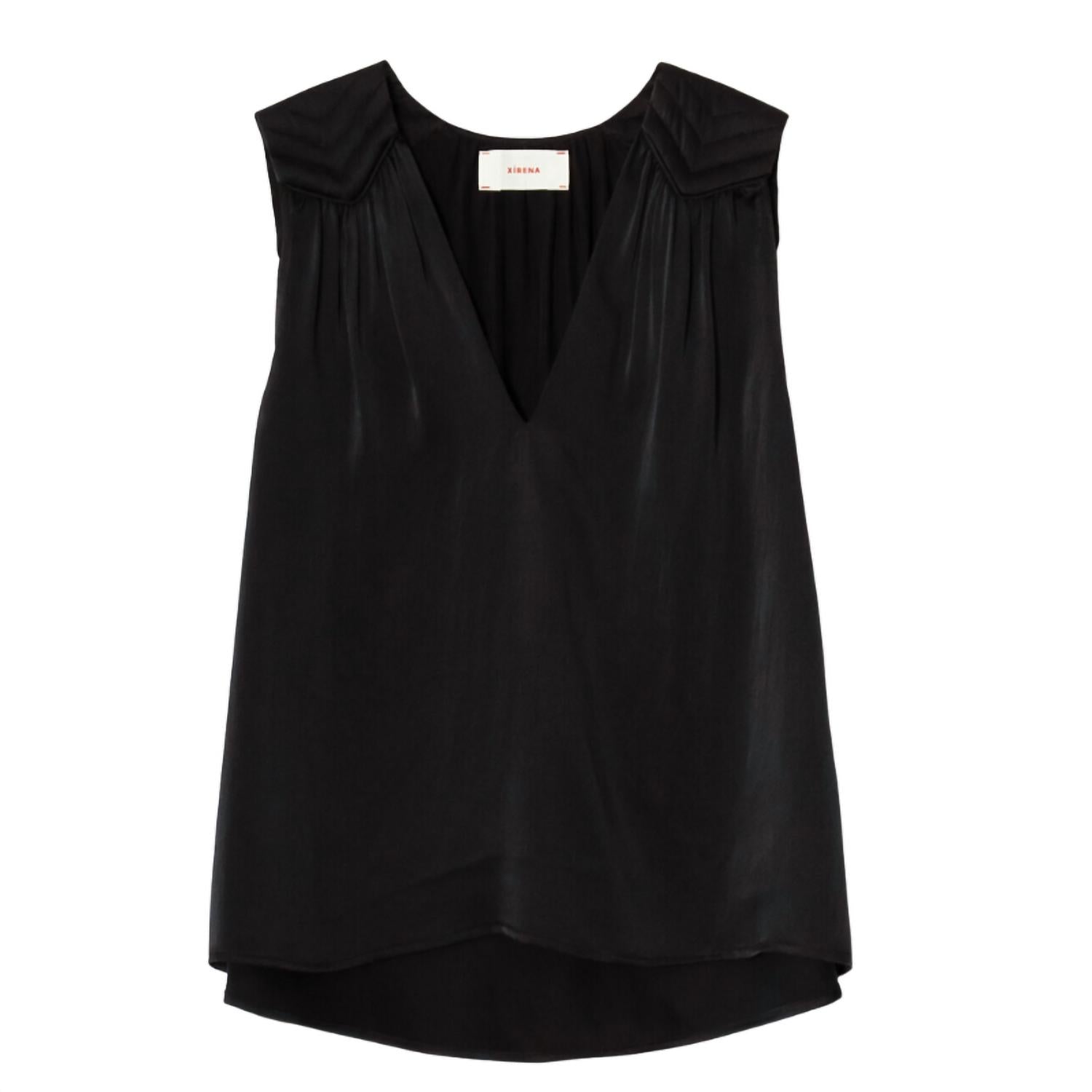 A versatile blouse that works from desk to dinner! Unveil the luxurious appeal of the XiRENA Vivi V-neck Top, an exceptional silk piece in solid black. Made from 100% Songbird Silk Charmeuse, this sleeveless blouse boasts a stylish deep V-neck and high-low hem, providing a flattering and elegant fit. With a pull-on closure, it’s designed in Los Angeles, showcasing timeless sophistication. Care: Dry clean only.