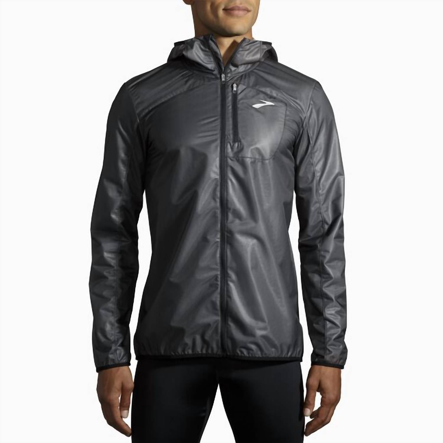 A casual yet cool jacket that every closet needs. Meet the All Altitude Jacket by BROOKS, a must-have for women who enjoy fitness with style and function. Crafted from knit material, this solid black jacket features long sleeves and a practical hooded neckline for streamlined weather protection. Designed for versatile occasions, it boasts a zip closure and convenient pockets, making it ideal for running or packing on the go. Embrace the streetwear trend this spring with a casual jacket that combines lightweight protection and packable convenience.