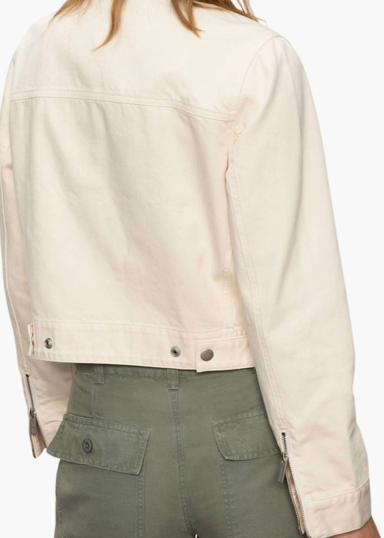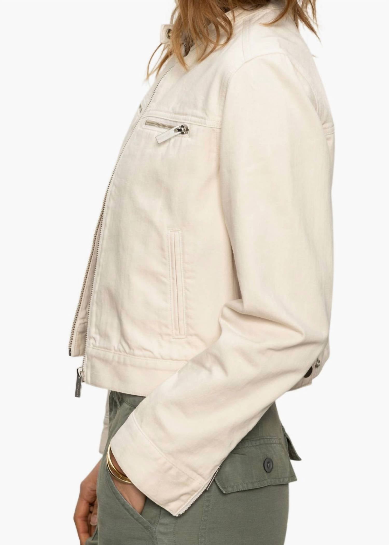 Soft leather, impeccable design. This leather jacket is a win-win. The Natalie Long Sleeve Moto Jacket by Sanctuary offers a chic twist on classic moto styling with its creamy Light Oak color and edgy silvery zip details. Crafted from 100% cotton, this jacket boasts a 34 1/2" length, perfect for adding a structured look to any ensemble. It features a front zip closure with zip cuffs, a band collar with snap closure, chest zip pockets, vertical welt pockets, and adjustable snap side tabs for a customizable fit. Care is easy with machine wash and tumble dry instructions, making it both stylish and convenient for fall travels or Thanksgiving gatherings. Imported.
