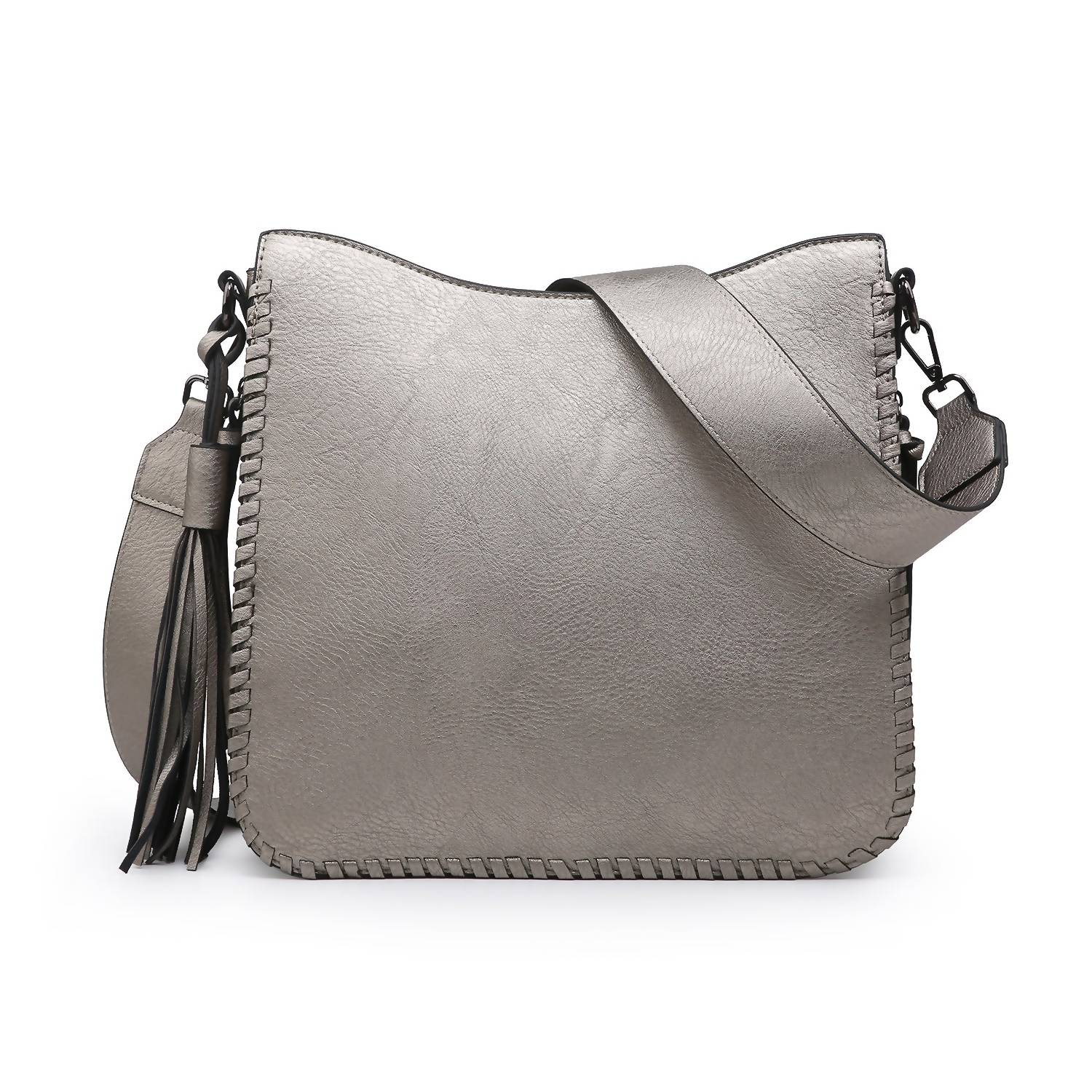 The crossbody bag is a trend that is here to stay and we especially love this style. Meet the Women's Nina Bag by Jen & Co., a top-selling crossbody designed with stylish whipstitch detailing in a chic pewter hue. This faux leather bag boasts a detachable guitar strap, offering versatility and comfort for every occasion. Featuring functional side concealed pockets, inner zip and slip pockets, and a back zip pocket, it ensures ample storage. Measuring 13"L x 4"D x 11"H, it's a spacious yet compact accessory perfect for everyday use.