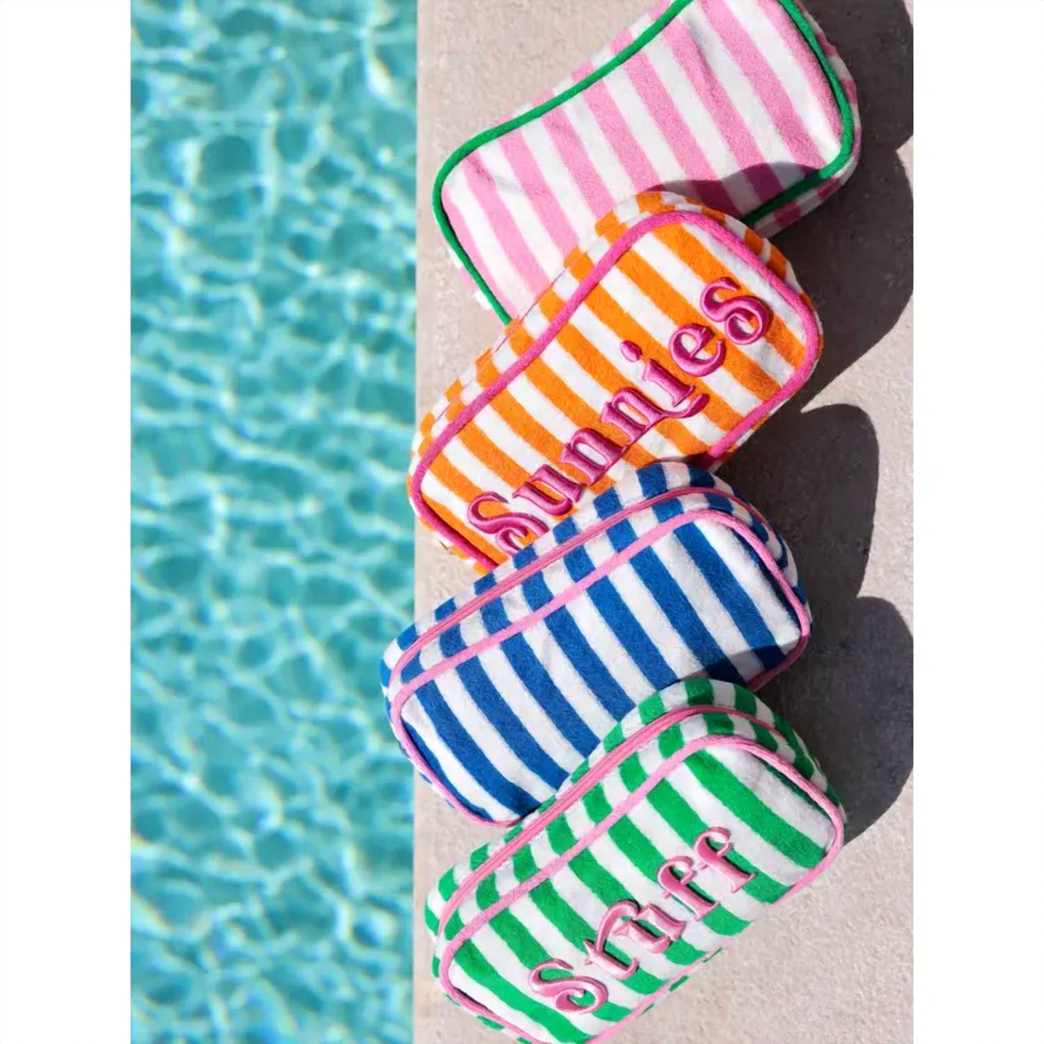 The carry-all satchel of the season. Dimensions: 8.5 x 2 x 4.5 in (21.6 x 5.1 x 11.4 cm) About this product Cotton Terry; Top Zip Closure; 1 Inner Slip Pocket. Say Hello To The Cabana Stripe Small Zip Pouch—A Chic Yet Playful Companion For All Your Essentials! Crafted In Vibrant Striped Terrycloth With Contrasting Piped Edges, This Compact Pouch Is As Cute As It Is Functional. Perfect For Holding Makeup, Tech Accessories, Or Random "Just-In-Case" Items, Its Small Size Makes It An Effortless Fit In Your Beach Bag Or Everyday Tote. Pair With Other Items In The Cabana Beach Club Collection To Complete Your Summer Vacation Look!
