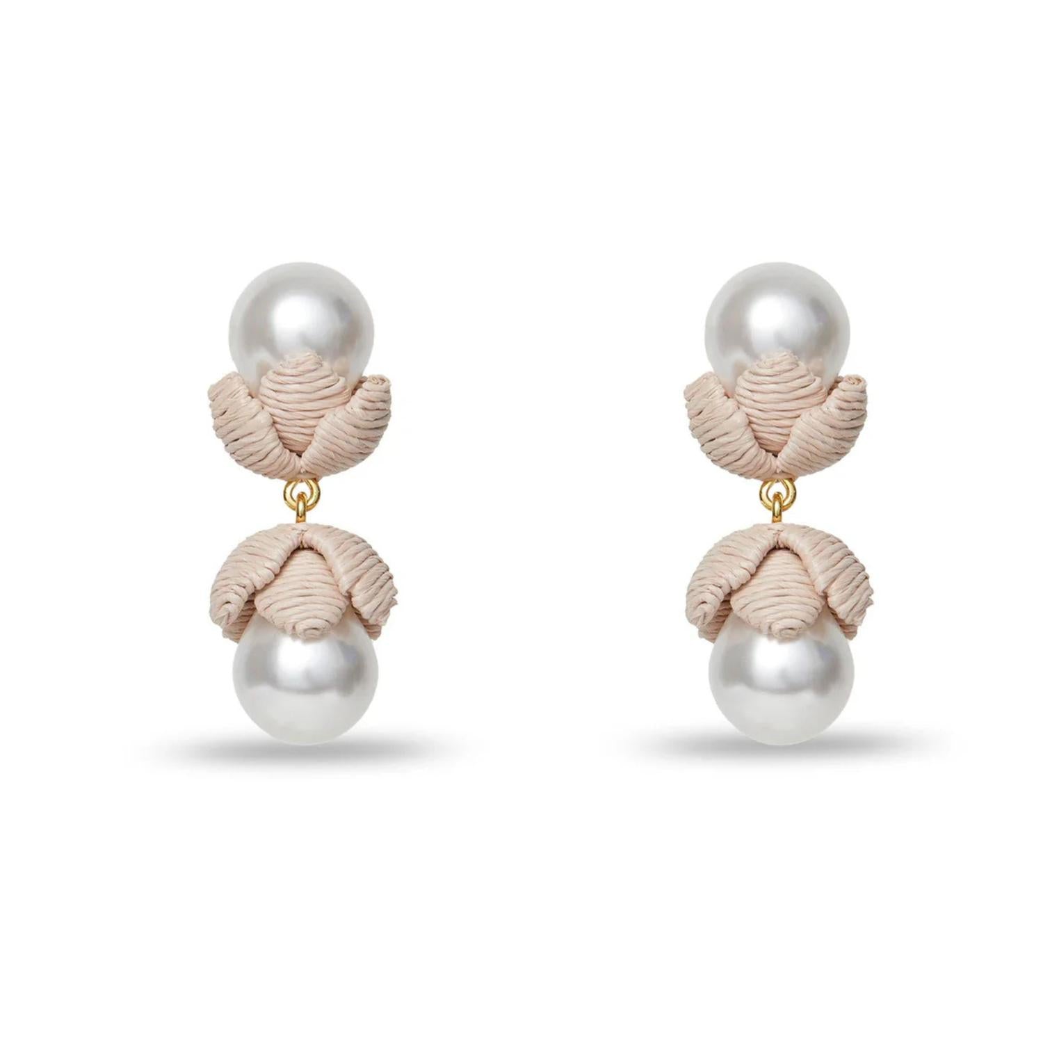 Classic earrings that will take you from season to season. Elevate your summer style with the Women's Chloris Droplets Earrings by LELE SADOUGHI, a striking accessory in natural tones. These earrings feature faux pearls beautifully set within natural raffia flowers, complemented by 14k gold-plated links. Crafted with surgical steel posts, they measure 1.75" in length and 0.75" in width. Store these stunning pieces in the custom striped pouch provided.
