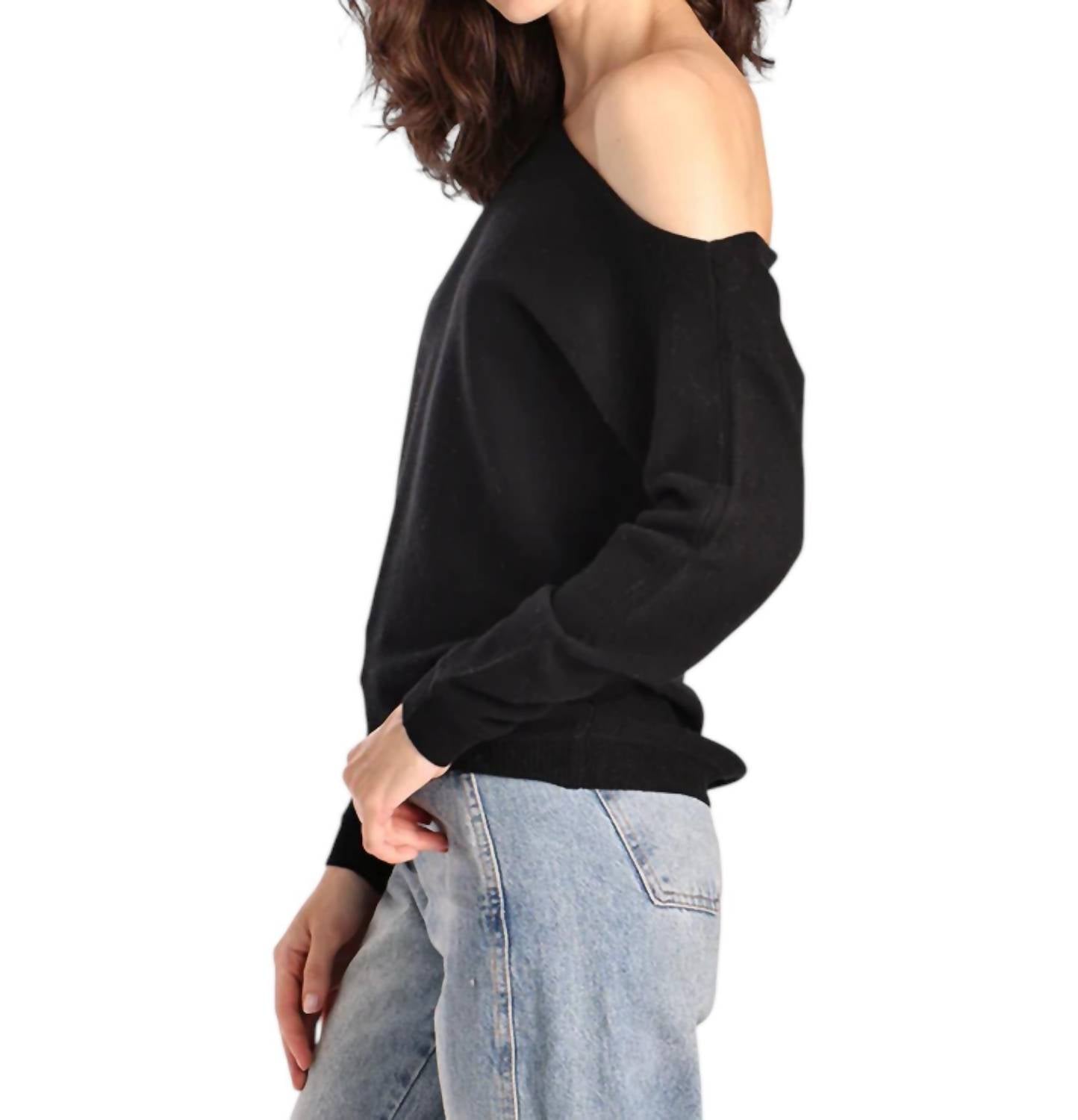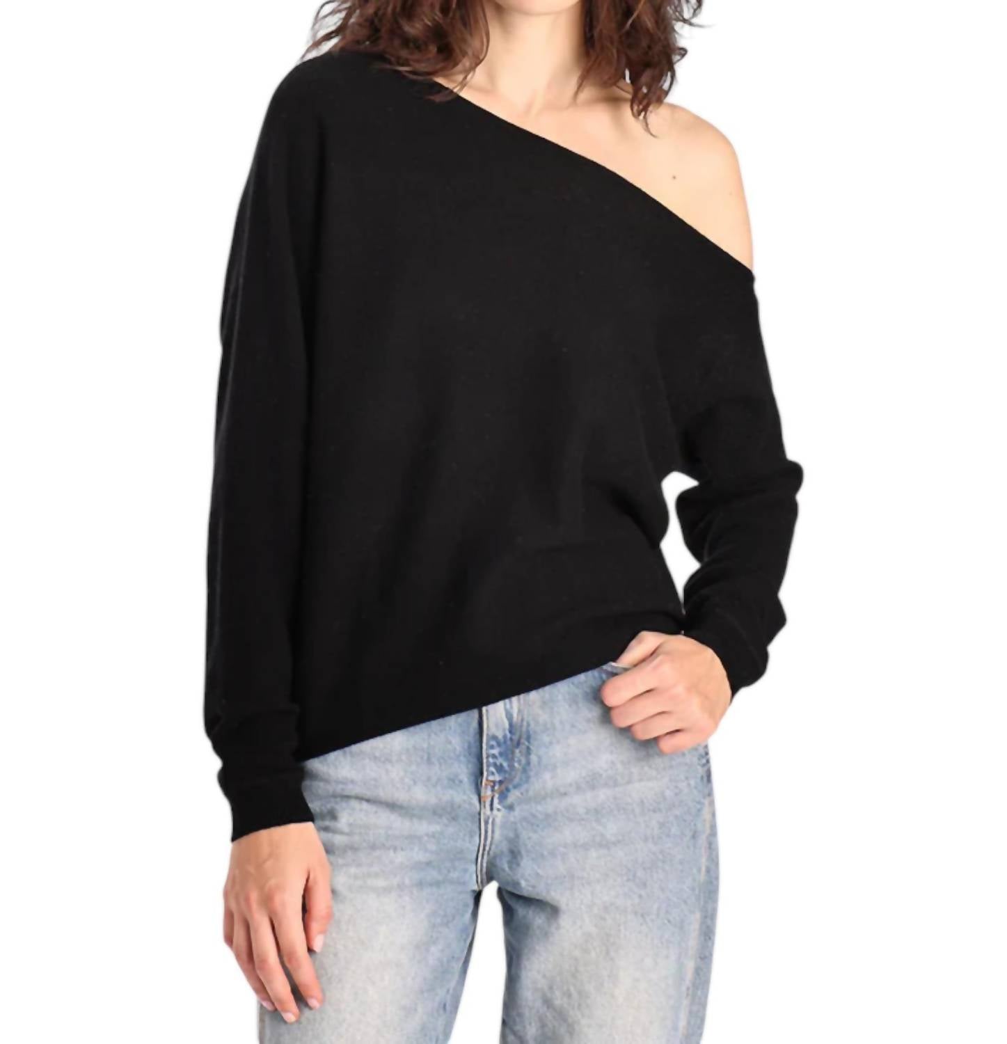 Step into plush luxury. Long sleeve, off-the-shoulder top. Crafted from 100% Cashmere. Brings a touch of femininity to your wardrobe with its graceful and relaxed fit. Pull-on closure. Dry clean or hand wash for maintaining its soft allure.