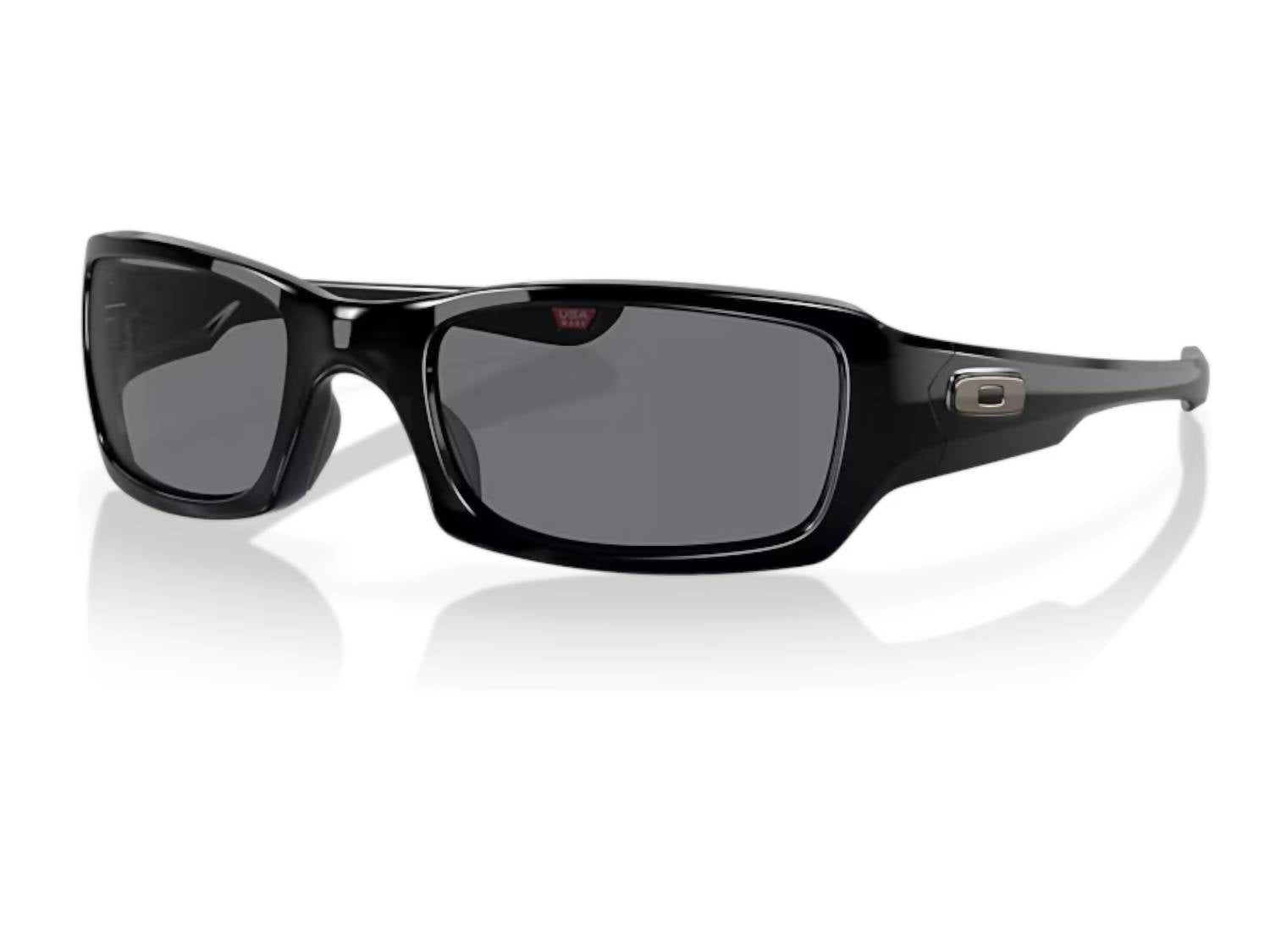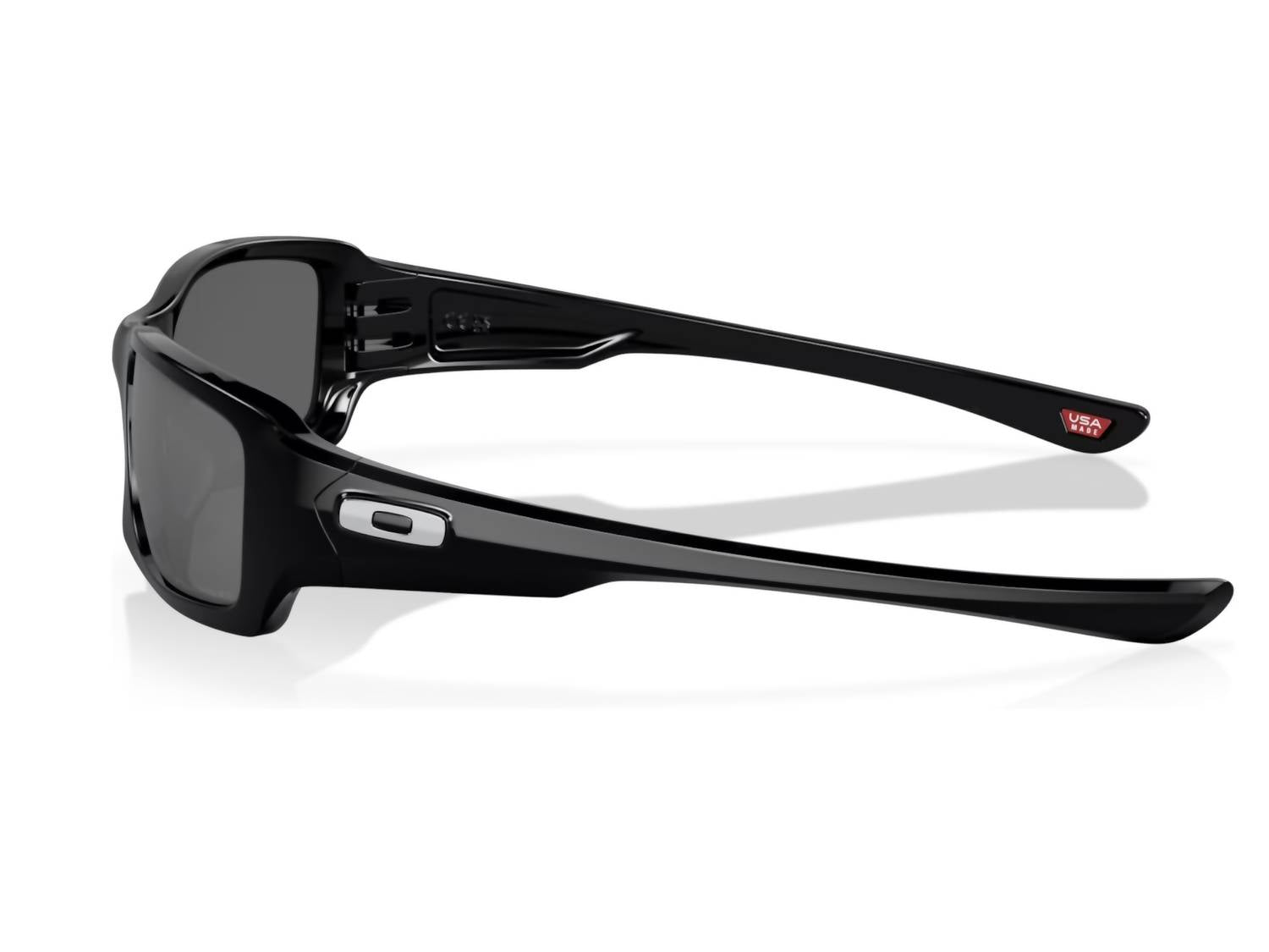 Introducing the Men's Fives Squared Sunglasses by Oakley, a sleek addition to your eyewear collection. These glasses feature a polished black, lightweight O Matter frame with Square O metal accents, complemented by black iridium polarized lenses. Designed with a high bridge fit and narrow face coverage, they offer a comfortable and secure fit with a temple length of 132 mm. Perfectly suited for those seeking a blend of style and functionality.