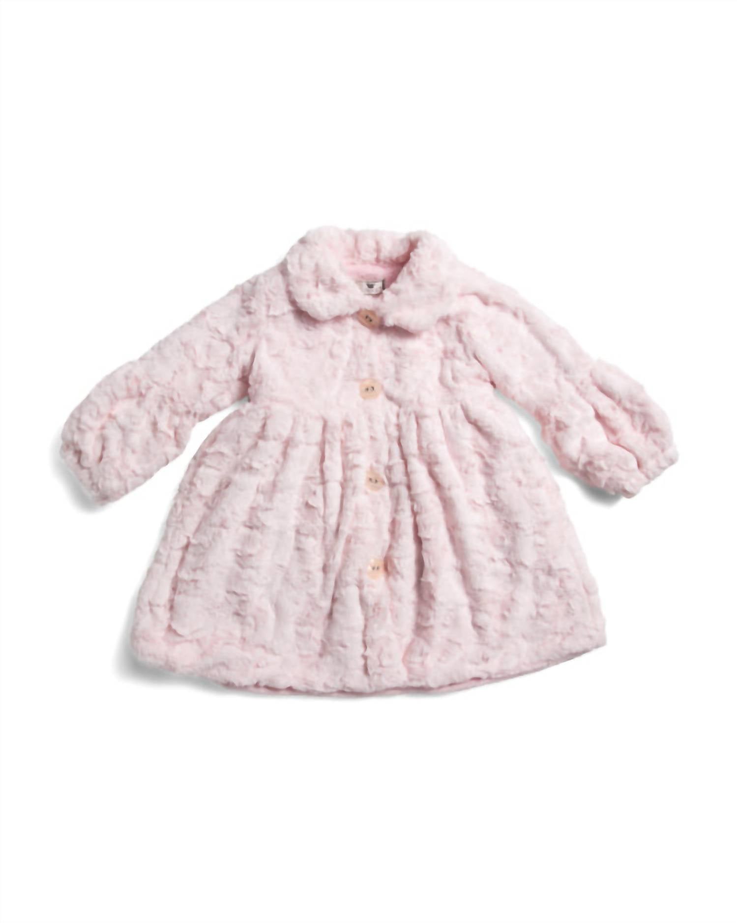 Wrap your little one in the delightful comfort of the Girl's Faux Fur Coat by American Widgeon. Crafted from luxurious light rose faux fur, this coat offers a touch of sophistication with a plush faux fur lining. It features a practical button closure for ease and style. Care for this elegant piece effortlessly with machine wash instructions. Perfect for casual outings, this jacket adds a charming flair to any ensemble.