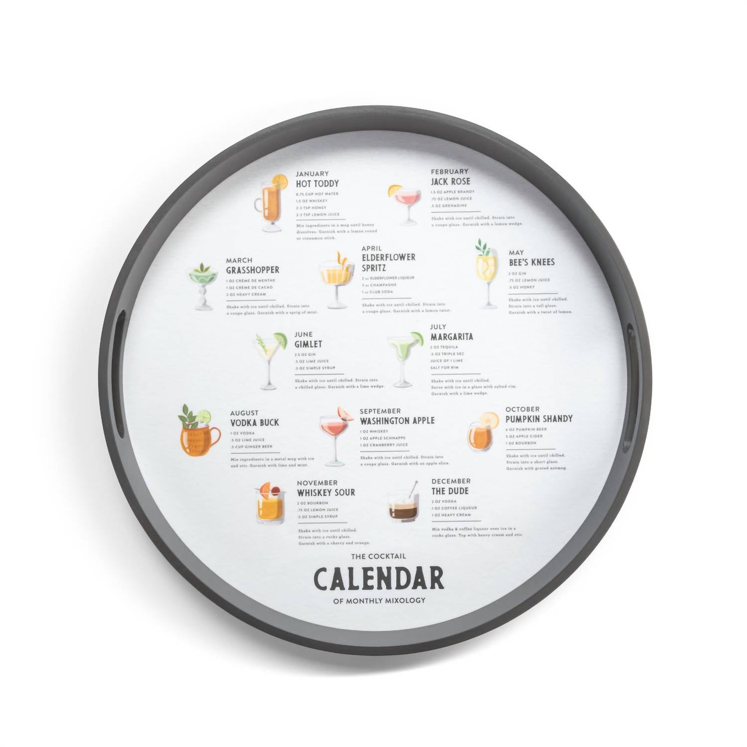 Enhance your entertaining experience with the Cocktail Calendar Serving Tray by DEMDACO, a stylish addition to your serveware collection in elegant gray. This 18" diameter and 2" high tray, crafted from durable wood composite, is perfect for both quiet nights in and lively evenings out with friends and family. Care is simple—just wipe with a damp cloth to maintain its charm. Add a touch of monthly mixology sentiment to your gatherings with this versatile tray.