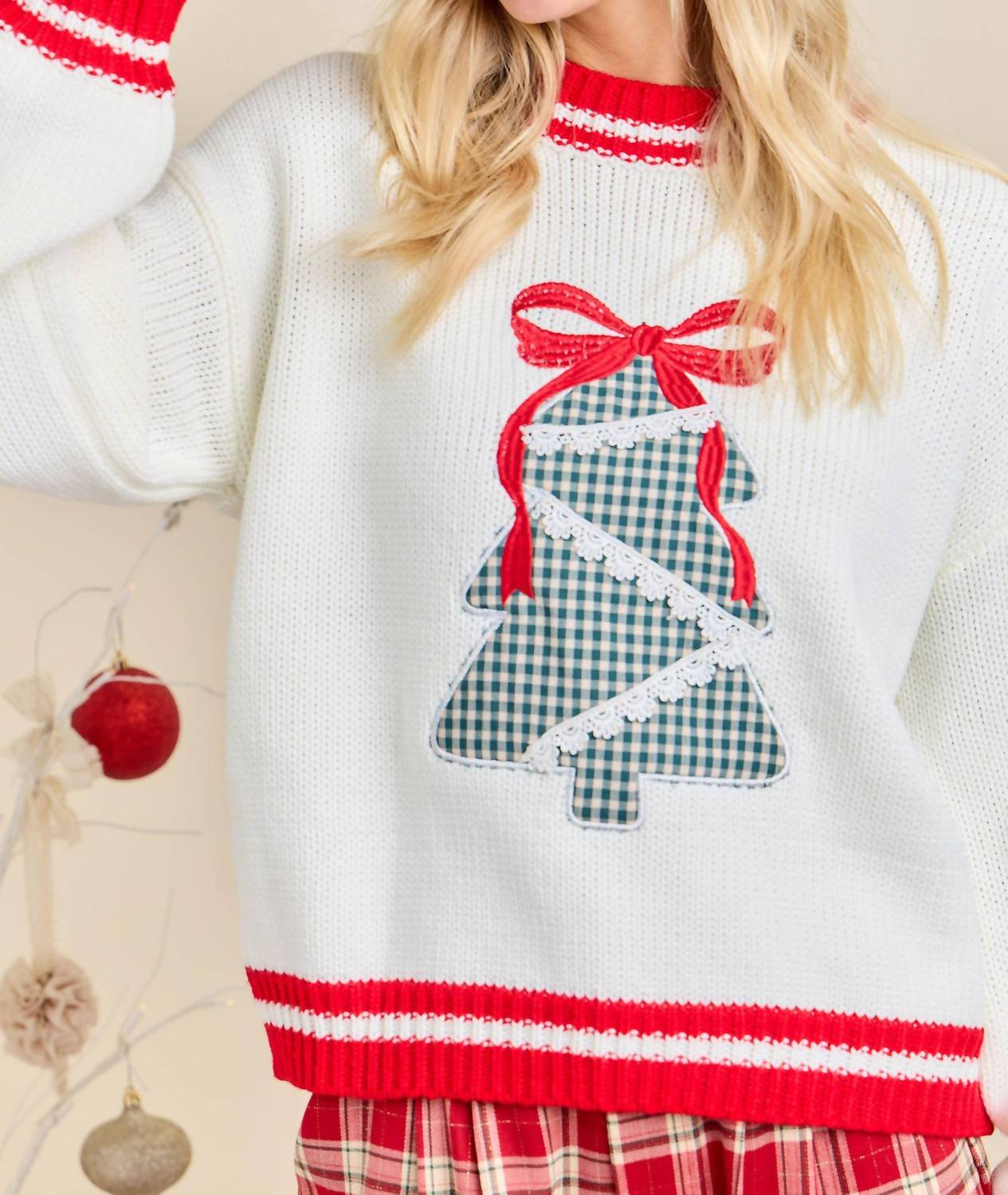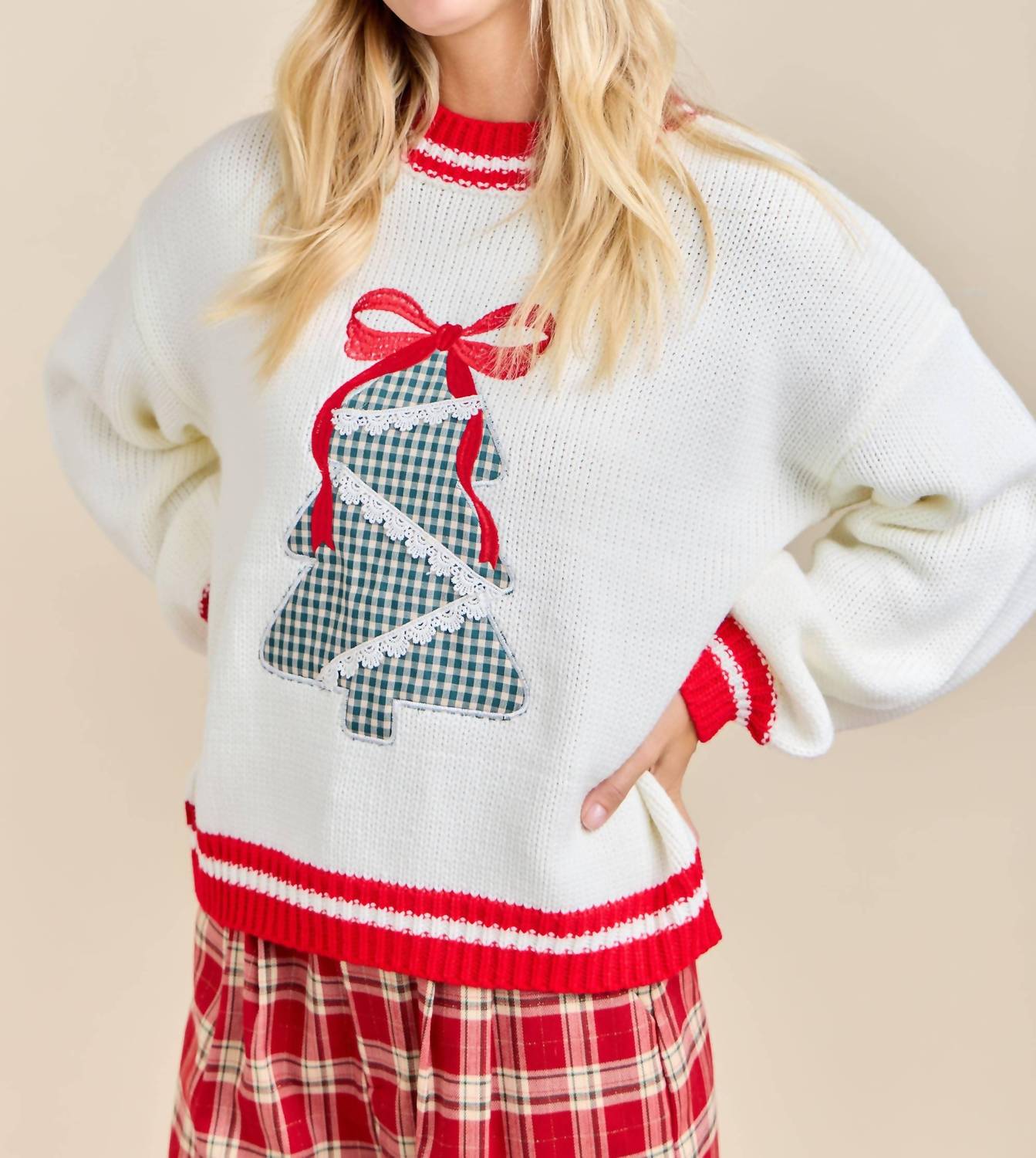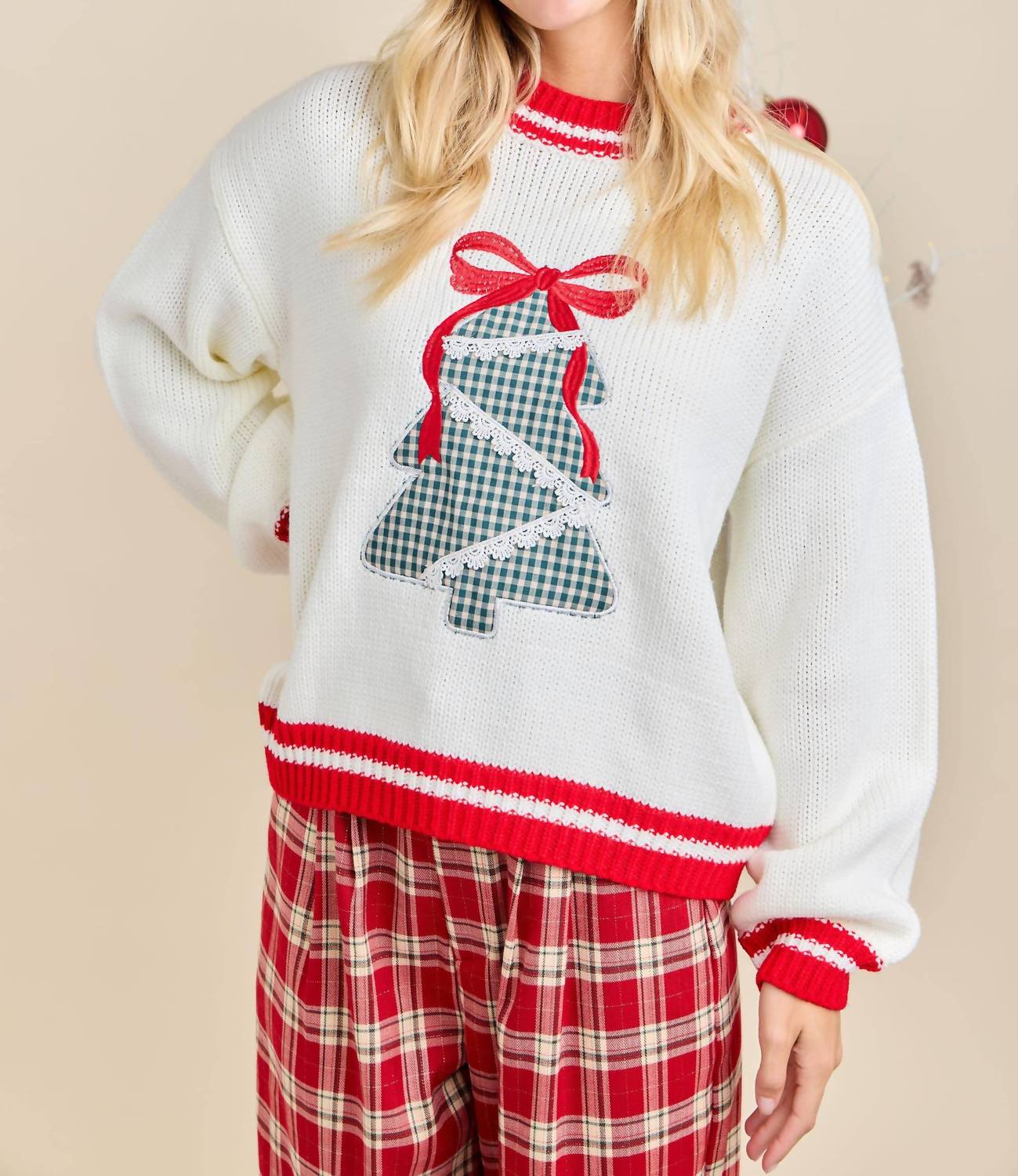 Experience the perfect blend of comfort and style with this trendy crew neck sweater, designed to effortlessly elevate your wardrobe. Pair it with your favorite denim and loafers for the perfect look. Celebrate the festive season with the Plaid Tree Christmas Sweater by Main Strip, designed to bring instant holiday cheer to your wardrobe. This women's knit sweater in ivory features a charming gingham plaid Christmas tree motif, complete with a playful red bow and festive red contrast trim at the crewneck, long sleeves, and hem. Perfect for Christmas parties, family gatherings, or cozy winter outings, this vintage-inspired pullover offers a relaxed fit and effortless style. Made for the holiday season, it is easy to style with denim or a plaid skirt for a merry look, and it features a convenient pull-on closure.