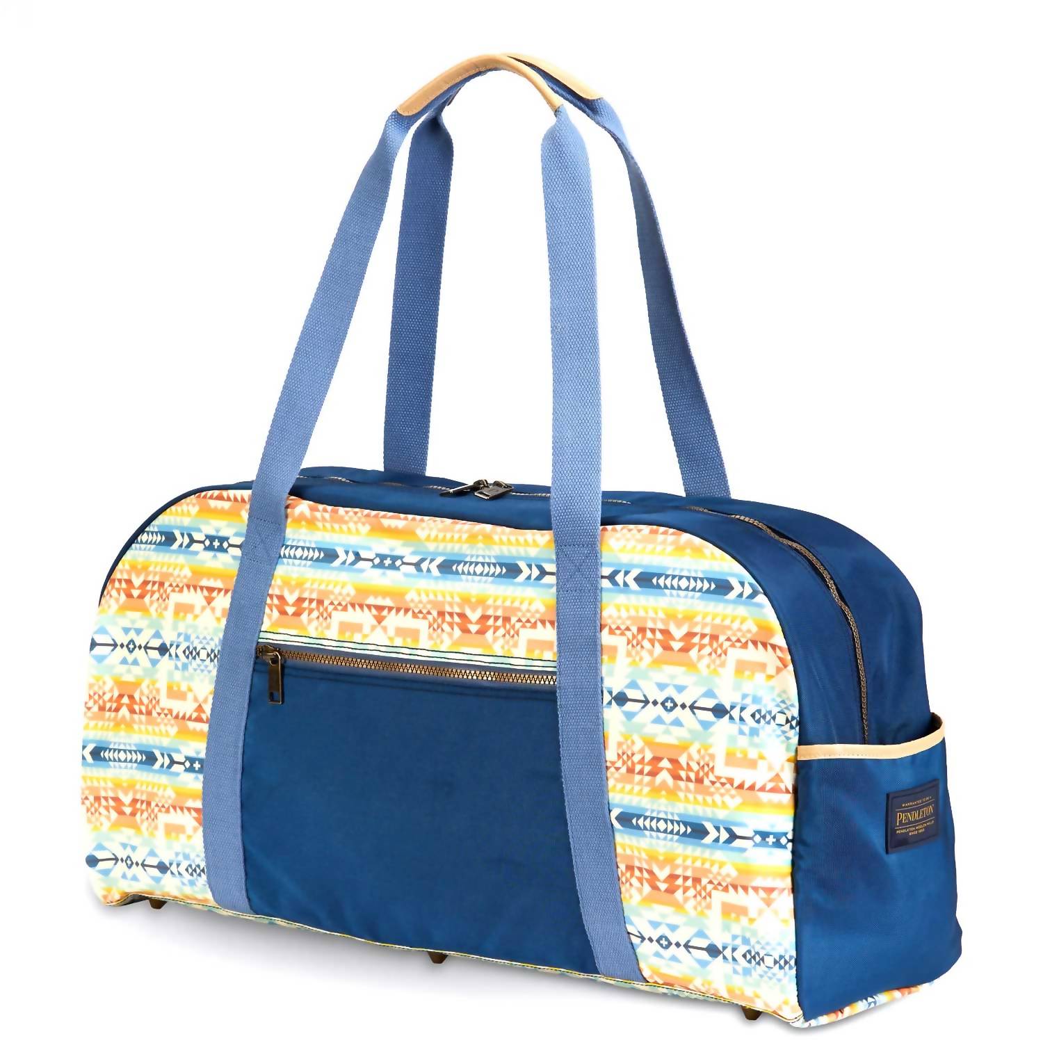 Discover the Opal Springs Canopy Canvas Weekender Bag by Pendleton, a spacious and stylish travel companion in an eye-catching Blue Multi pattern. Crafted from durable cotton canvas with a PVC coating, it measures 22" in width, 12" in height, and 8.5" in depth, boasting top handles with a 12" drop for easy carrying. Designed with practicality in mind, it features a secure zip closure, front zip pocket, side slip pockets, and an interior zip pocket, perfect for any adventure. For maintenance, simply spot clean to keep it looking fresh and clean.