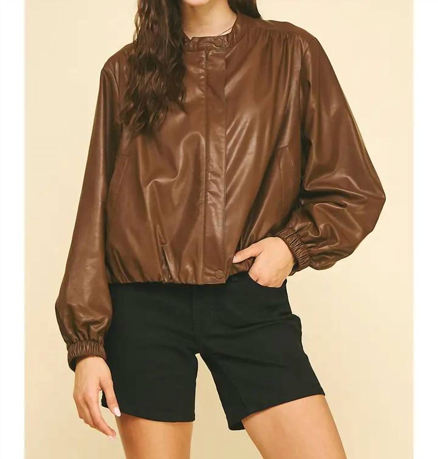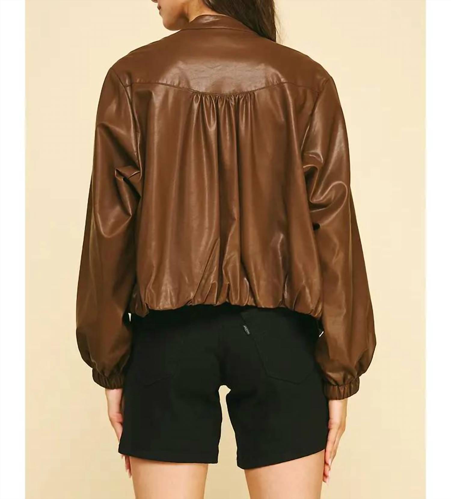 Soft leather, impeccable design. This leather jacket is a win-win. Faux leather Zipper closure Side pockets Pleated detail at back Model wears a size small