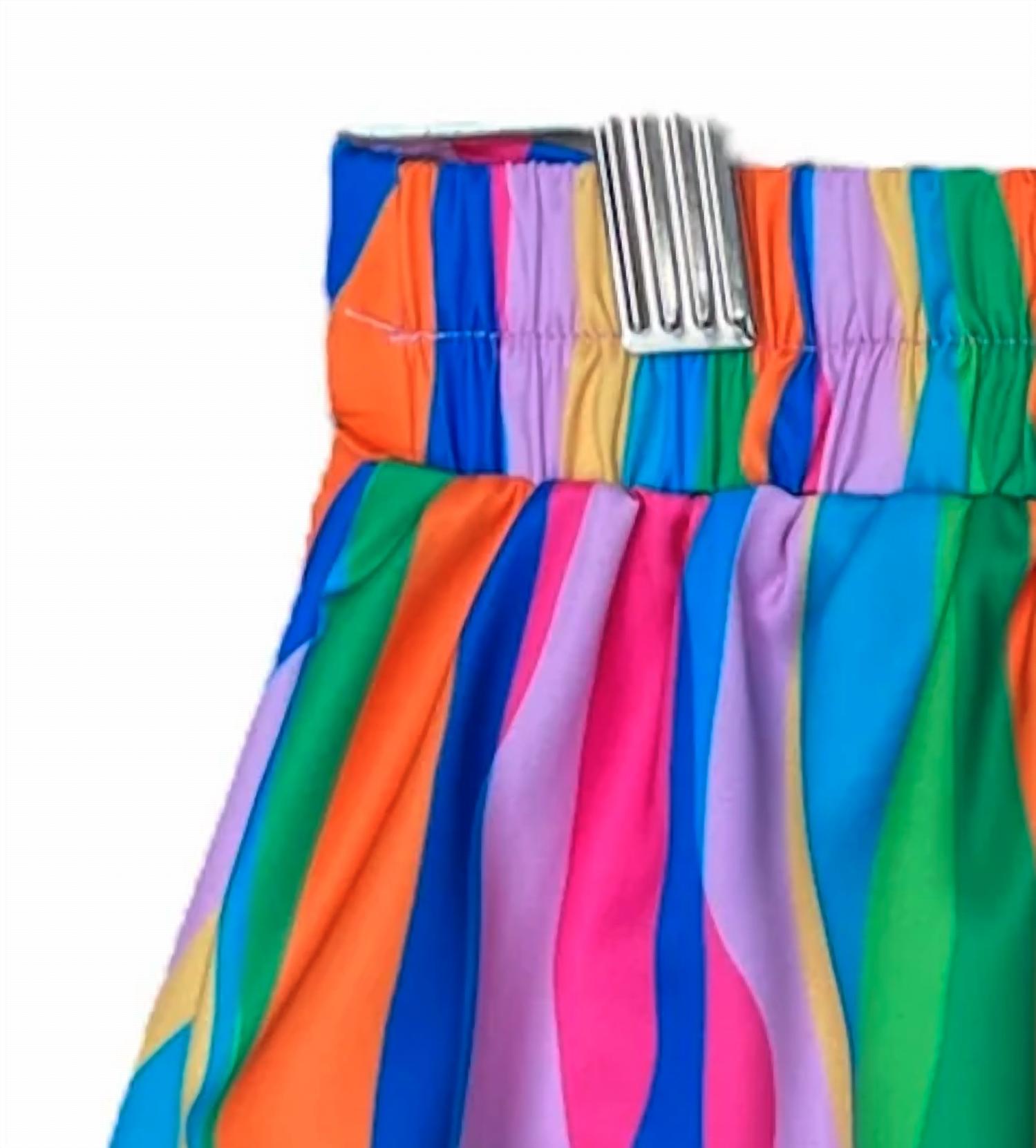 Fit to perfection, we love these high-waist shorts and you will too. Elevate your summer style with the Women's Hallie Shorts by Sincerely Ours, a delightful addition to any wardrobe. Made from Lycra, these high waist shorts feature a playful rainbow pattern for a vibrant statement piece. Designed with a pull-on closure for ease and comfort, they're perfect for a beach day or any boho chic occasion. Make a bold impression without pockets, ensuring a sleek and streamlined look ideal for sunny adventures.